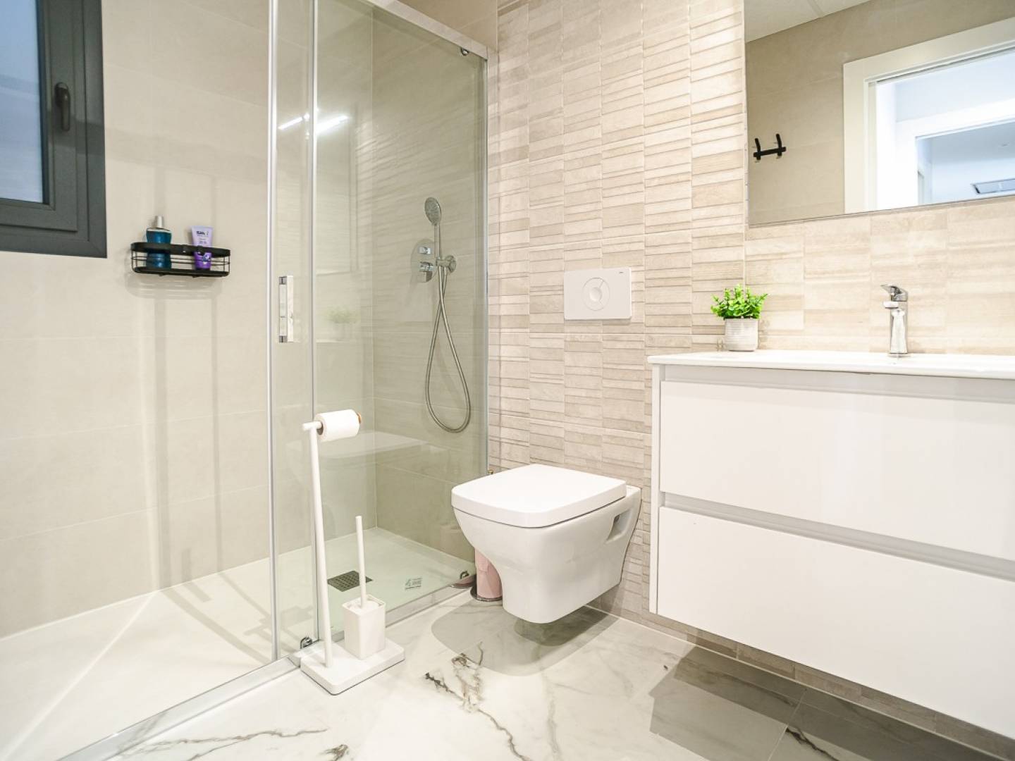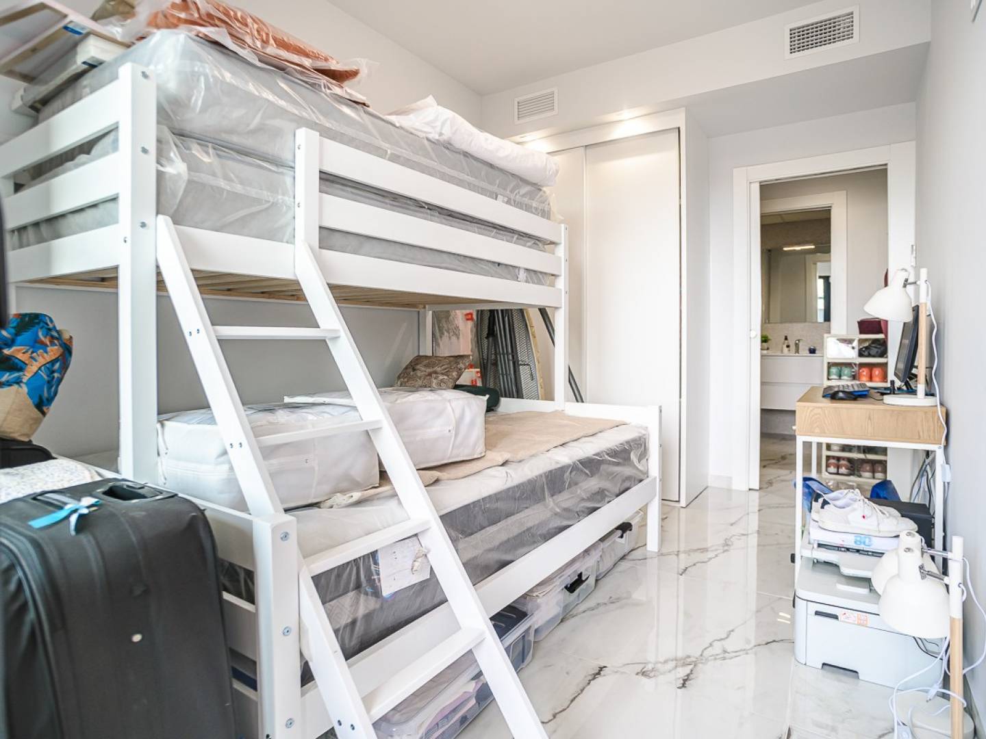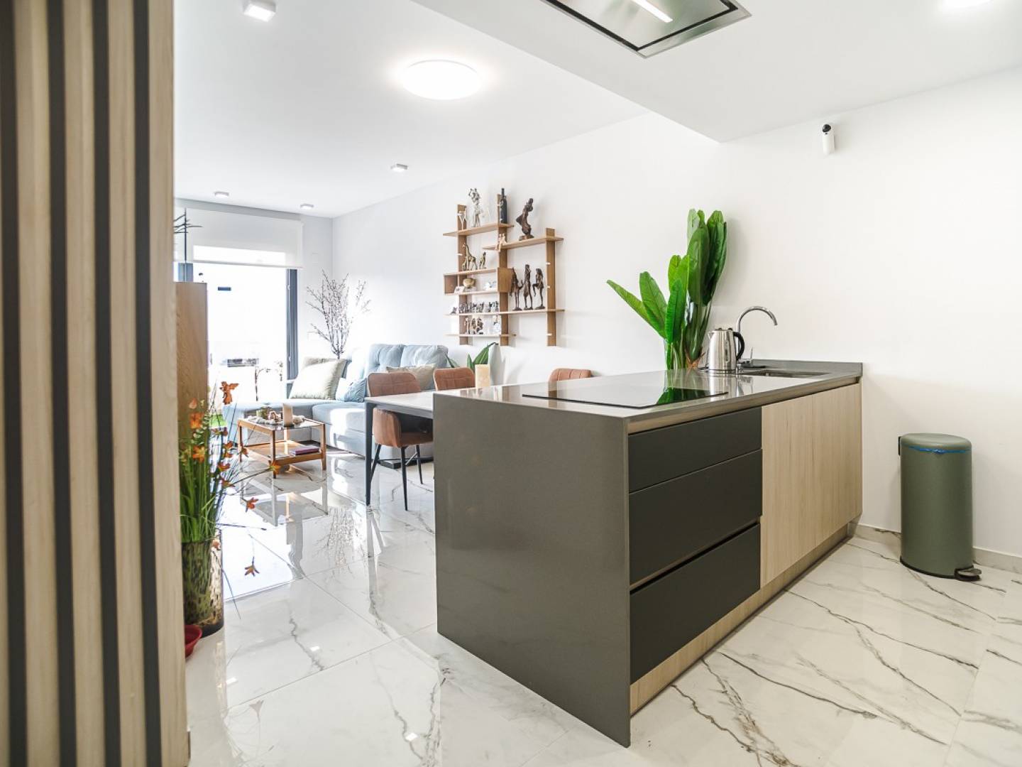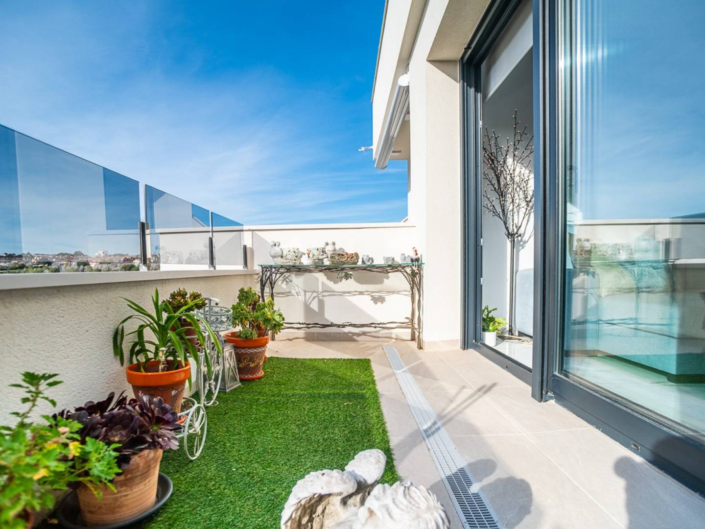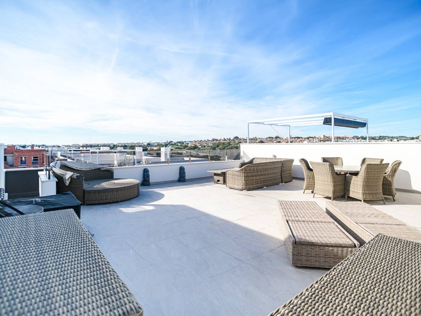 Ce penthouse quasi neuf à Orihuela Costa allie confort moderne et emplacement privilégié sur la Costa Blanca . Il comprend deux chambres et de spacieuses terrasses, réparties sur plusieurs blocs au sein d'une résidence sécurisée avec piscines pour adultes et enfants et magnifiques espaces verts paysagers. Son emplacement est exceptionnellement pratique : à proximité immédiate des commerces et services et à seulement 3 km des plages de Torrevieja et dOrihuela Costa. Les amateurs de golf pourront rejoindre les parcours de Villamartín à moins de 7 km. Le centre commercial Zenia Boulevard se trouve à 9 km. Les aéroports dAlicante (50 km) et de Murcie-Corvera (55 km) offrent des liaisons internationales aisées. Cet appartement bénéficie de finitions haut de gamme et d'une cuisine entièrement équipée avec électroménager, de volets roulants motorisés, d'une porte d'entrée sécurisée, d'un chauffe-eau aérothermique et de la climatisation. Il comprend une place de parking privative et un espace de rangement, et est entièrement meublé.