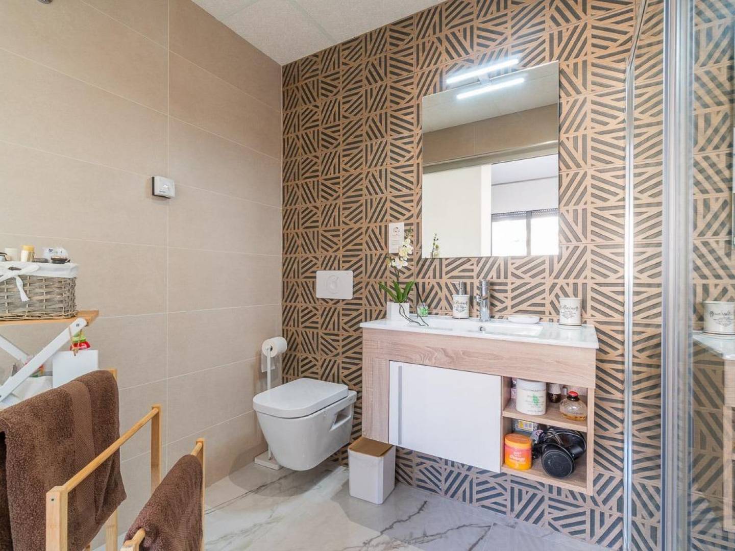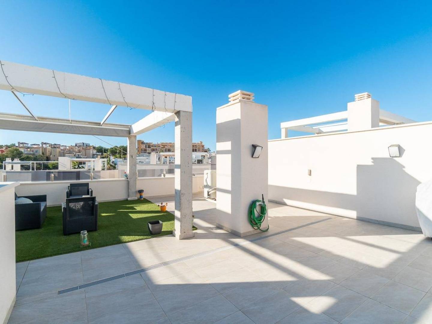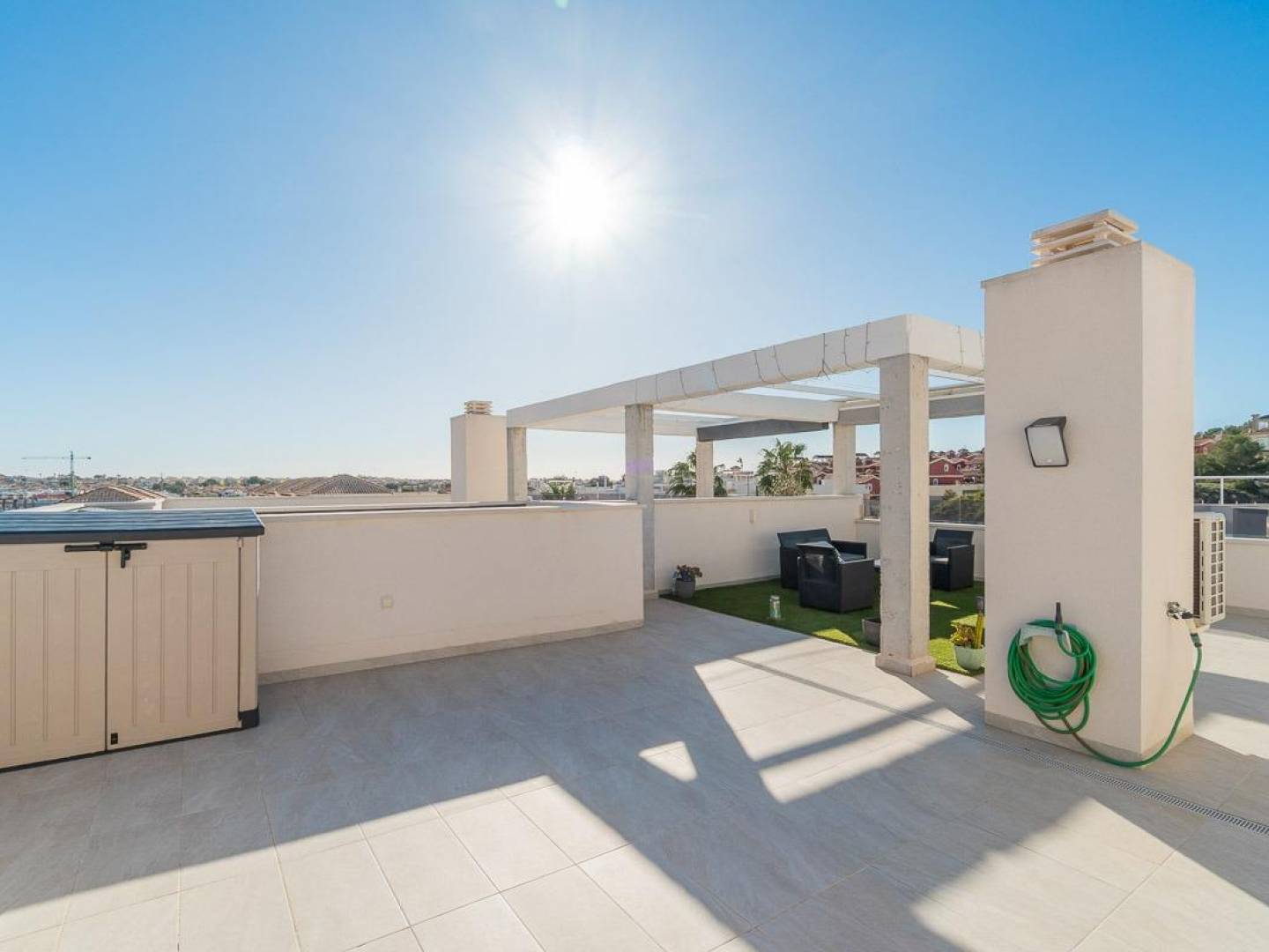 Découvrez ce superbe bungalow à létage supérieur situé dans la prestigieuse zone de PAU 26, Orihuela Costa, un environnement privilégié où se conjuguent design moderne, confort et qualité de vie.~~Cette propriété semi-neuve, construite en 2022, offre 76 m2 construits, une distribution fonctionnelle et une excellente orientation plein sud, garantissant une luminosité naturelle tout au long de la journée.~~Depuis la rue, vous accédez à une résidence privée et exclusive de seulement 24 logements, assurant tranquillité, intimité et un cadre résidentiel haut de gamme. À lentrée, vous découvrez un spacieux et lumineux salon-salle à manger avec une cuisine ouverte moderne. Le salon donne accès à une terrasse de 12 m2, équipée dun store électrique et de gazon artificiel, idéale pour profiter de lextérieur toute lannée grâce à son exposition ensoleillée.~La maison dispose également dune buanderie, de deux grandes chambres doubles et de deux salles de bains complètes, toutes deux avec chauffage au sol, un véritable plus en matière de confort.~~Depuis la terrasse, un escalier privé mène au joyau de la propriété : un magnifique solarium privé denviron 71 m2, aménagé avec gazon artificiel et stores, parfait pour créer un espace chill-out exclusif ou se détendre au soleil méditerranéen.~~Parmi les prestations : sol en grès cérame, moustiquaires à toutes les fenêtres, porte blindée, store électrique sur la terrasse et store manuel sur la pergola du solarium.~~La propriété est vendue avec une place de parking et un débarras fermé, offrant un confort supplémentaire.~~La résidence dispose dune superbe piscine communautaire, de jardins parfaitement entretenus et despaces communs de grande qualité, dans un cadre réellement luxueux.~~Située à seulement 3,5 km de la mer, la propriété se trouve à proximité de plages emblématiques telles que La Zenia et Playa Flamenca, réputées pour leurs eaux cristallines et leurs services.~~La proximité de plusieurs parcours de golf renommés en fait également un excellent investissement locatif saisonnier, très recherché.~~ Une propriété pensée pour offrir exclusivité, confort et art de vivre méditerranéen.~Une opportunité unique à découvrir sans tarder.~Prix : 349 000 €~Taxes et frais dacquisition non inclus (conformément à la réglementation en vigueur). Un détail des frais supplémentaires sera communiqué avant la réservation.