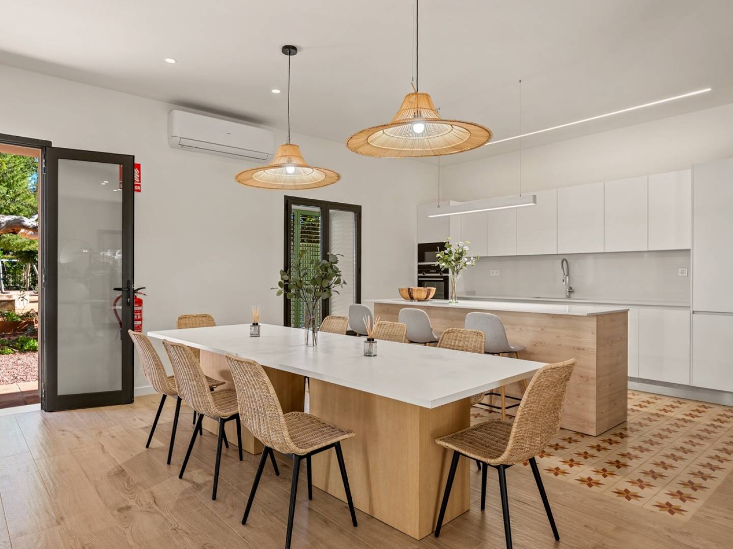 Appartement avec 2 chambres spacieuses et un grand salon avec cuisine ouverte, 2 salles de bains, situé dans une résidence exclusive à Dénia, à seulement 200 m de la plage. Le logement est terminé, mais non meublé. La cuisine est équipée dappareils Siemens : four, micro-ondes et plaque à induction. Le réfrigérateur et le lave-vaisselle doivent être achetés séparément. Les chambres disposent de placards intégrés. Dans le couloir, un espace est prévu pour la machine à laver ainsi quun placard de rangement. La résidence est unique, située au sein dun parc historique avec une végétation mature et luxuriante. Les résidents disposent des équipements suivants : conciergeriepiscinepiscine pour enfantsjardinsespace de co-workingsalle de sportsalle polyvalente pour événements et réceptionsparking souterraincave / local de rangement Lappartement bénéficie dune orientation ouest avec vue sur la mer et le port. Quartier calme, très verdoyant, avec des immeubles résidentiels de faible hauteur (jusquà 3 étages). Distances : Plage 300 mSupermarché Masymas 300 mCentre historique de Dénia 900 m