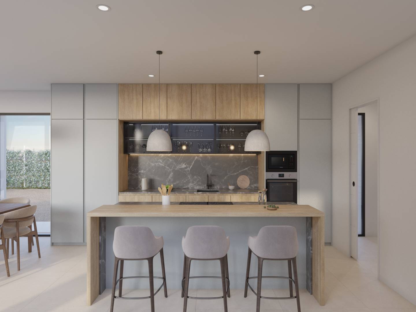 L'intérieur de ces maisons indépendantes est conçu pour offrir un maximum de confort et de fonctionnalité. Avec des options de 3 ou 4 chambres et 2 ou 3 salles de bains, chaque maison s'adapte aux besoins spécifiques de ses résidents. Les sols en grès cérame apportent une touche d'élégance et de durabilité, tandis que les volets électriques et les appareils inclus facilitent la vie quotidienne. La climatisation est assurée par la climatisation et une pré-installation pour un système supplémentaire, garantissant une atmosphère agréable toute l'année. Les placards intégrés optimisent l'espace de rangement, contribuant à une maison ordonnée et efficace.