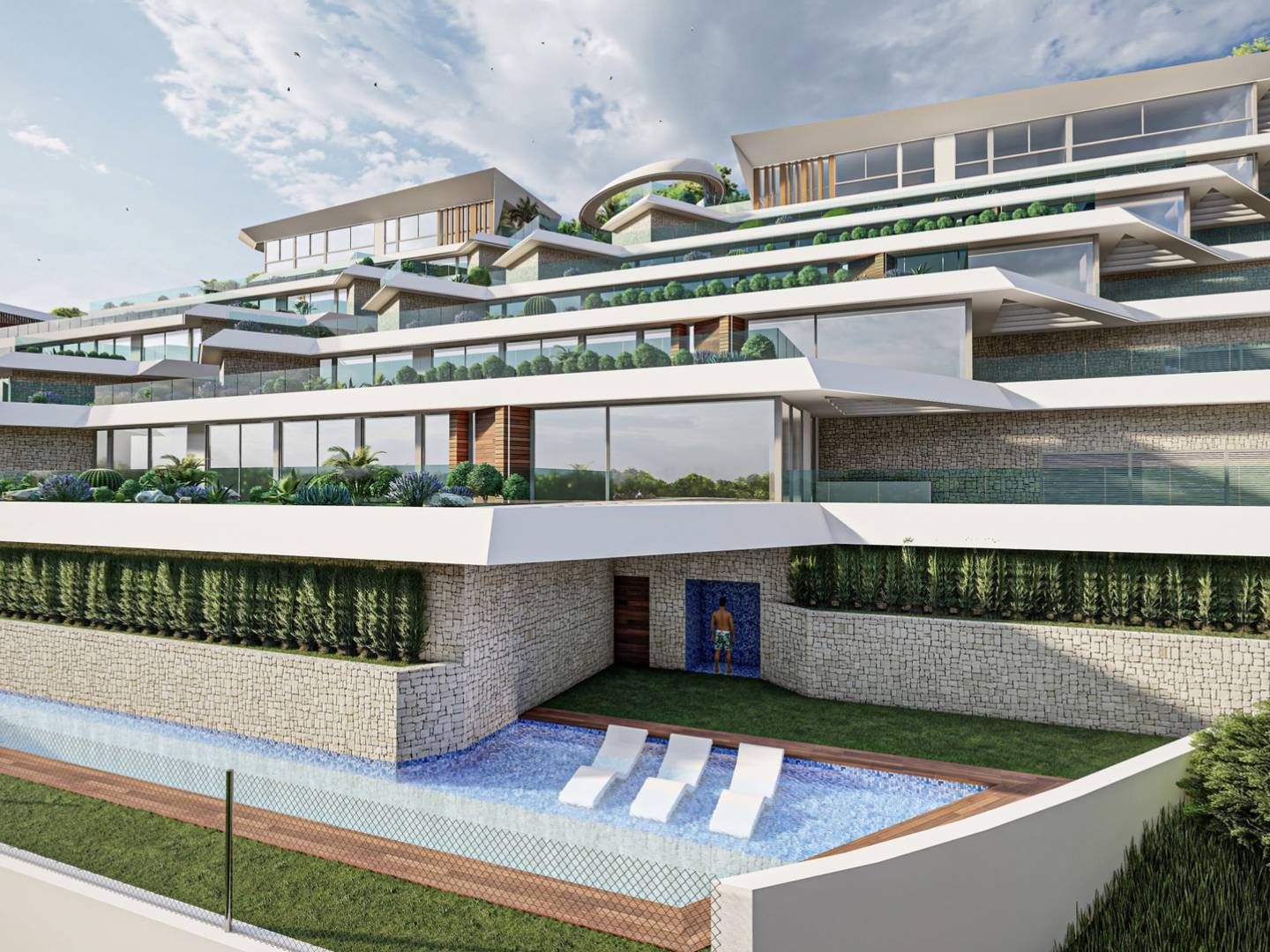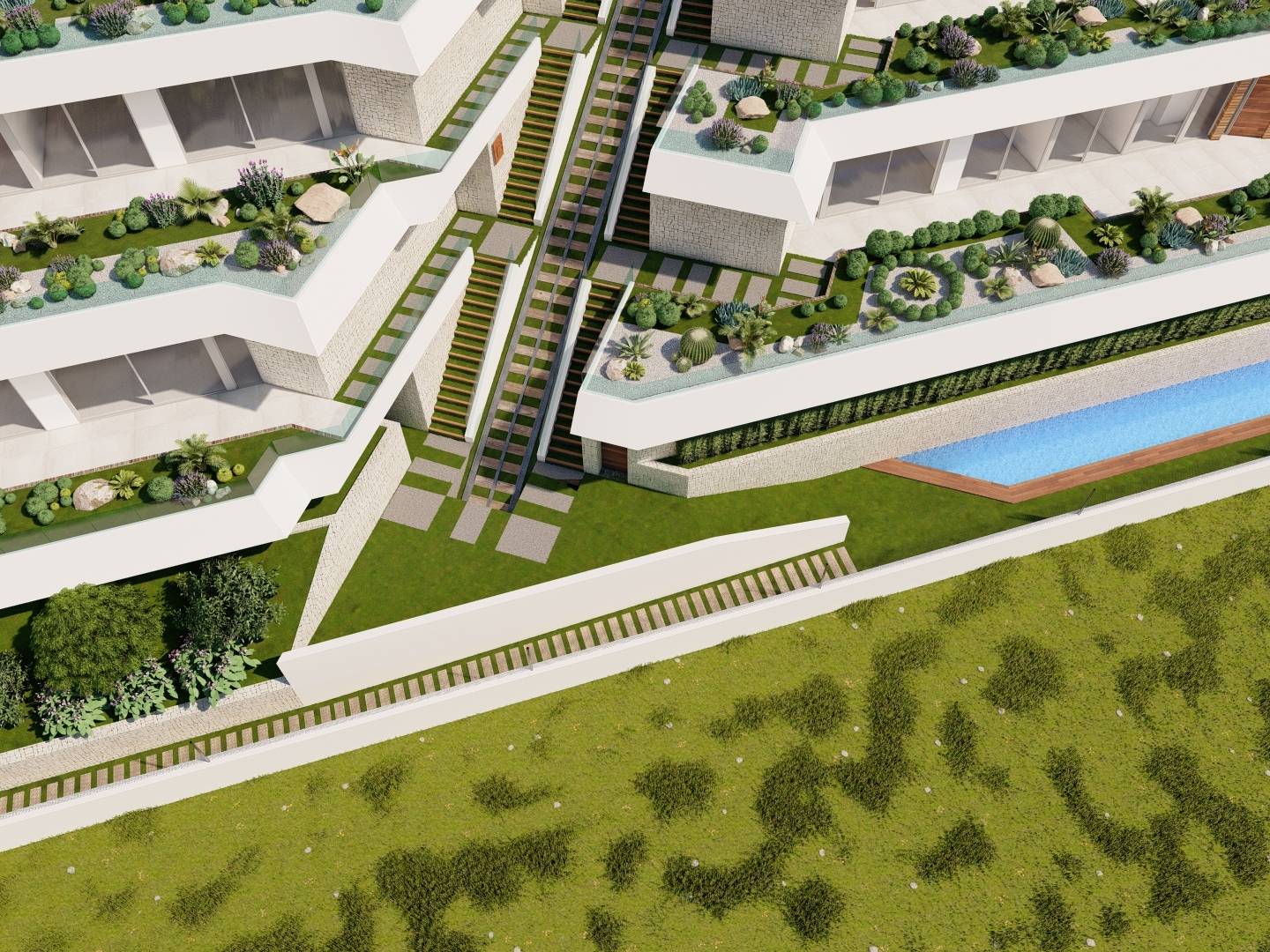 Les espaces extérieurs de ces propriétés à Pueblo Mascarat sont conçus pour offrir un maximum de plaisir de l'environnement naturel et des vues sur la mer. Chaque propriété dispose d'une terrasse privée, idéale pour se détendre et profiter du paysage. De plus, certaines propriétés incluent un jardin privé, parfait pour ceux qui recherchent un espace vert personnel. La présence d'une piscine privée dans certaines typologies permet de profiter d'une baignade rafraîchissante dans l'intimité de son foyer. Les pergolas offrent de l'ombre et du style aux espaces extérieurs, créant des espaces accueillants pour la détente et le divertissement en plein air. La proximité de la mer, à seulement 400 mètres, rend l'accès à la plage pratique et rapide, permettant de profiter de la côte à tout moment.