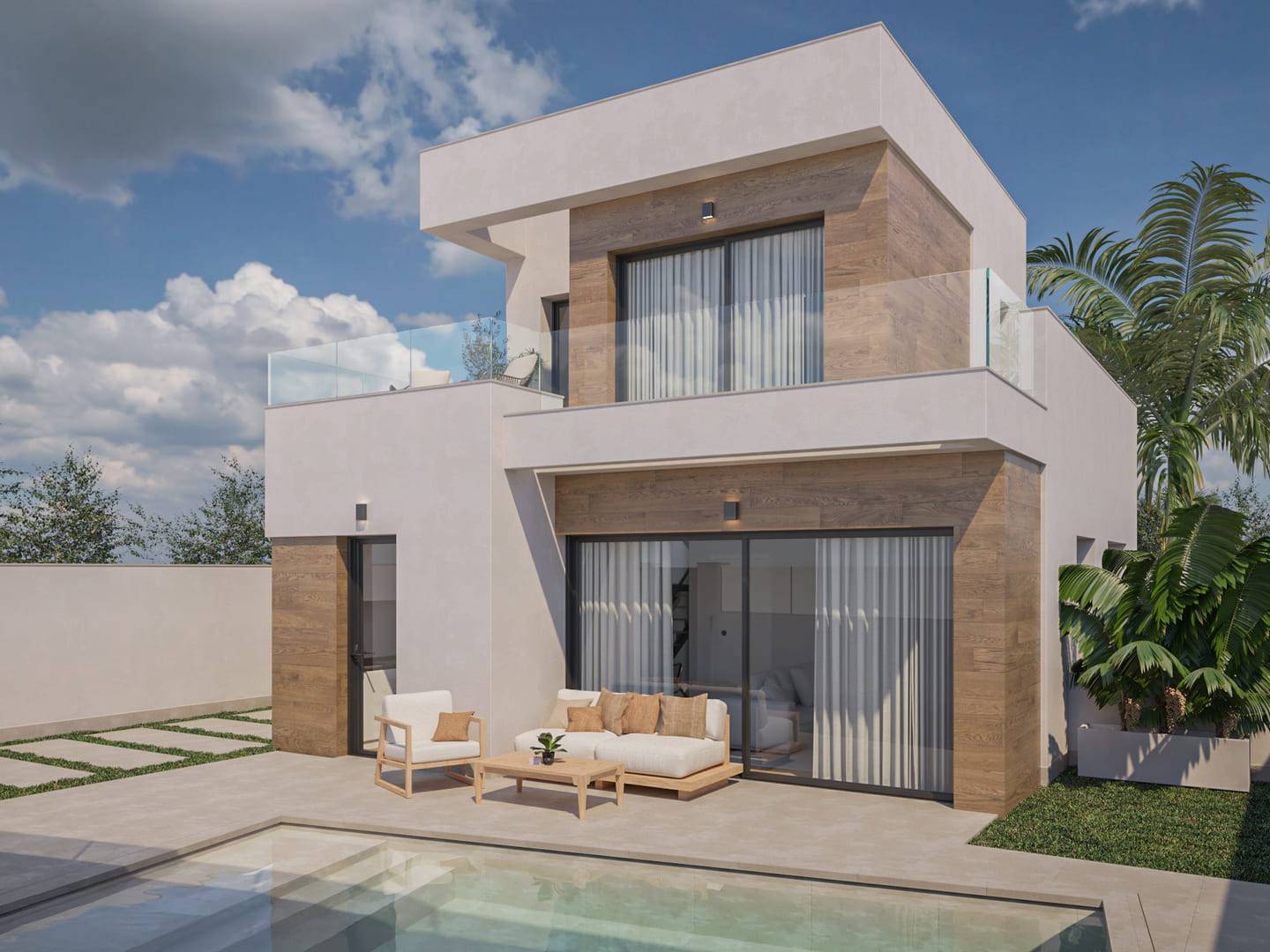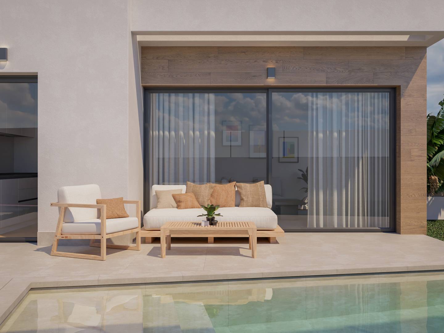Le chalet dispose d'un jardin privé qui offre un espace parfait pour profiter de l'extérieur. De plus, il comprend une terrasse et un solarium, idéaux pour se détendre et profiter au maximum du climat méditerranéen. La propriété inclut également une piscine privée, offrant une oasis personnelle pour se rafraîchir pendant les chaudes journées d'été. Ces espaces extérieurs sont conçus pour maximiser le plaisir et l'intimité de ses résidents.