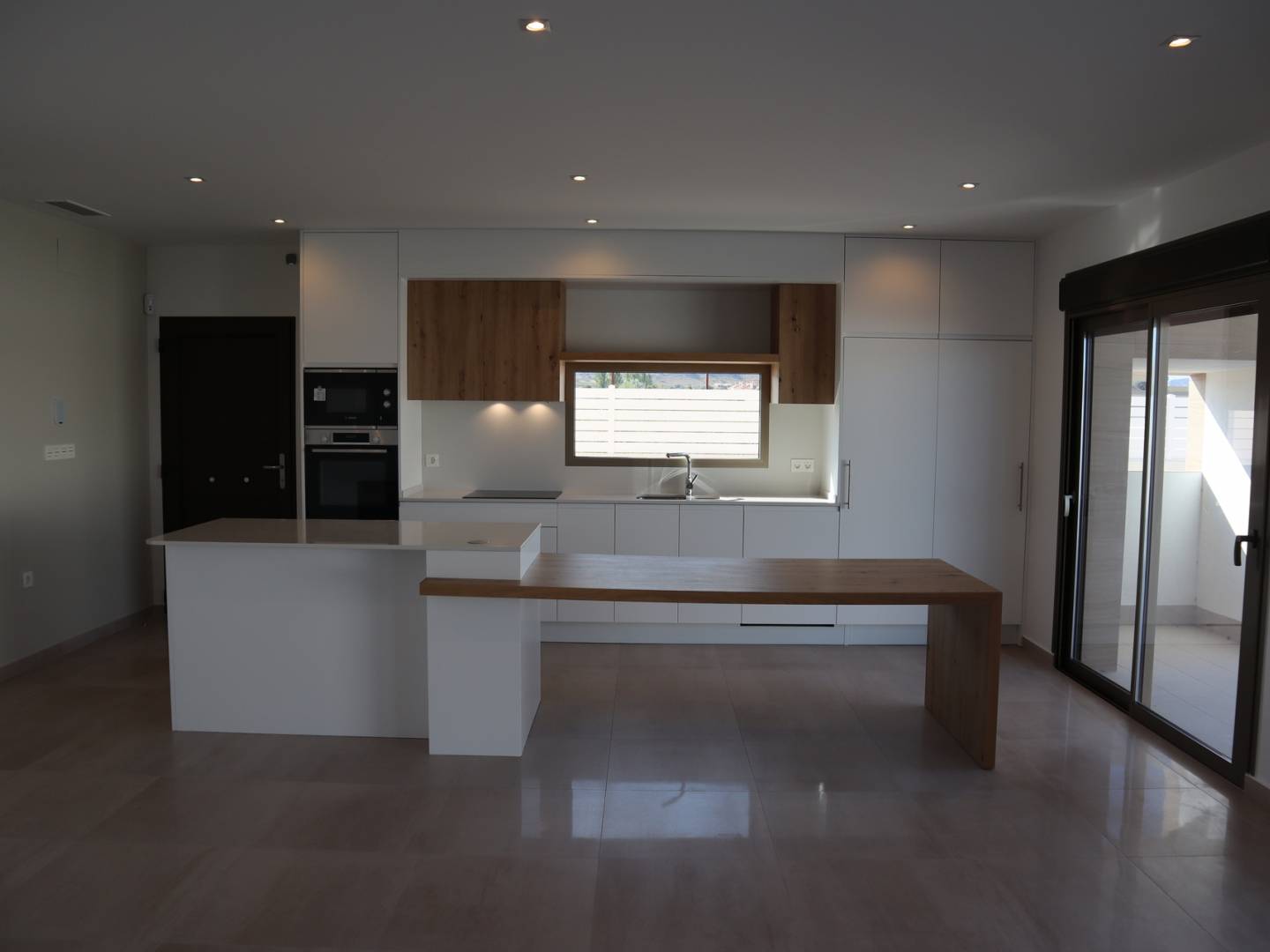 L'intérieur de la maison est conçu avec un accent sur le confort et l'efficacité. Les sols en grès cérame apportent une touche d'élégance et sont faciles à entretenir. La cuisine est équipée d'appareils modernes, facilitant les tâches quotidiennes. Le système de climatisation garantit une ambiance agréable toute l'année. Les volets électriques et les placards intégrés sont des détails qui ajoutent fonctionnalité et confort à la maison, permettant une utilisation optimale de l'espace.