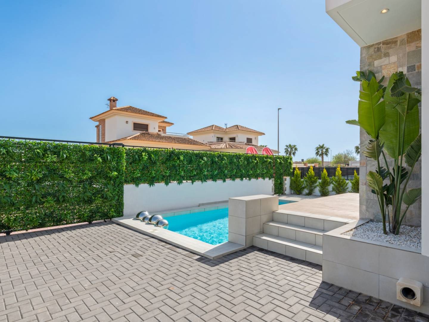 Les extérieurs de ces propriétés ont été soigneusement conçus pour maximiser le plaisir du climat méditerranéen. Chaque chalet dispose d'un jardin privé, parfait pour créer un oasis personnel de tranquillité. La présence d'une piscine privée ajoute une touche de luxe, idéale pour se rafraîchir pendant les chaudes journées d'été. De plus, les terrasses offrent un espace supplémentaire pour se détendre en plein air, profiter de repas en plein air ou simplement contempler l'environnement. Le solarium est un autre atout, offrant un lieu exclusif pour bronzer en toute intimité. L'inclusion d'un jacuzzi à l'extérieur permet de profiter de moments de détente à tout moment de l'année.