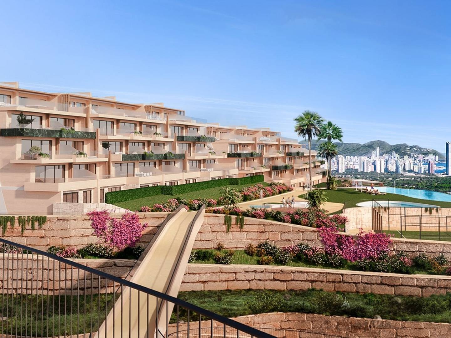 Situé dans une enclave privilégiée très proche des plages, des centres commerciaux, des supermarchés, des restaurants et des terrains de golf . Ce complexe entre Finestrat et Benidorm dispose d'une large gamme de services qui comprend une piscine pour adultes, une piscine pour enfants et une piscine d'hiver chauffée, une salle de sport, un sauna finlandais, des courts de paddle-tennis, un parc de jeux pour enfants et des espaces verts.