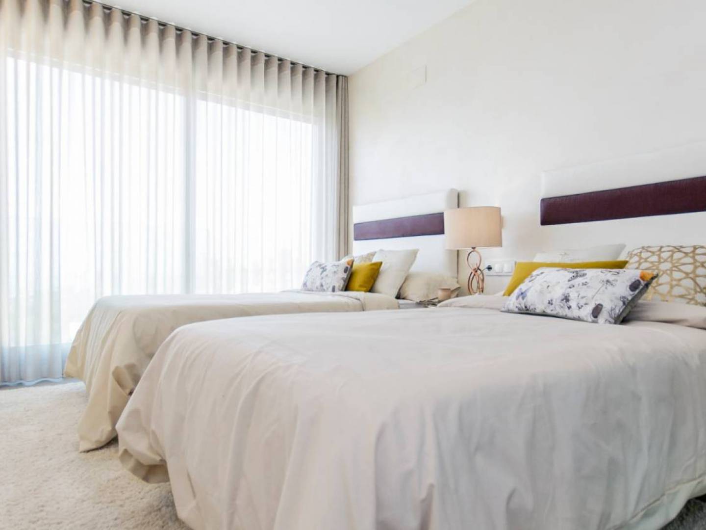 L'intérieur des villas est conçu pour offrir un espace accueillant et moderne. Chaque propriété dispose de 3 chambres et 3 salles de bains, offrant un espace généreux pour les familles ou les invités. Les placards intégrés dans les chambres optimisent le rangement et maintiennent l'ordre. La cuisine est équipée d'appareils modernes, facilitant les tâches quotidiennes. Les espaces intérieurs sont pensés pour maximiser la lumière naturelle, créant une ambiance lumineuse et agréable dans toutes les pièces.