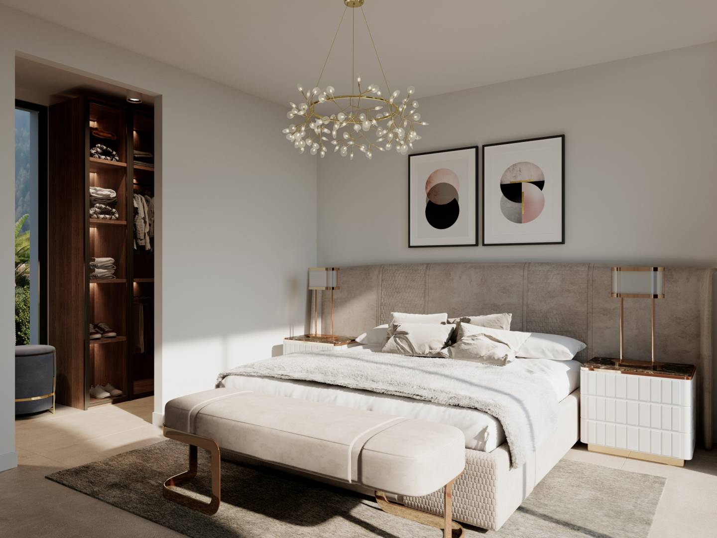 L'intérieur des villas est soigneusement conçu pour offrir un maximum de confort et de fonctionnalité. Avec cinq chambres et quatre salles de bains, ces propriétés sont parfaites pour les familles ou pour recevoir des invités. La disposition comprend un garage, assurant un espace pour le stationnement et le stockage. Les finitions de haute qualité incluent des sols en grès cérame, qui apportent durabilité et style moderne. Les villas sont équipées d'appareils de dernière génération, de domotique pour un contrôle efficace de la maison, de la climatisation pour maintenir une température agréable toute l'année, et de chauffage au sol pour les mois les plus froids. Les placards intégrés offrent un vaste espace de rangement, gardant le design intérieur propre et ordonné.