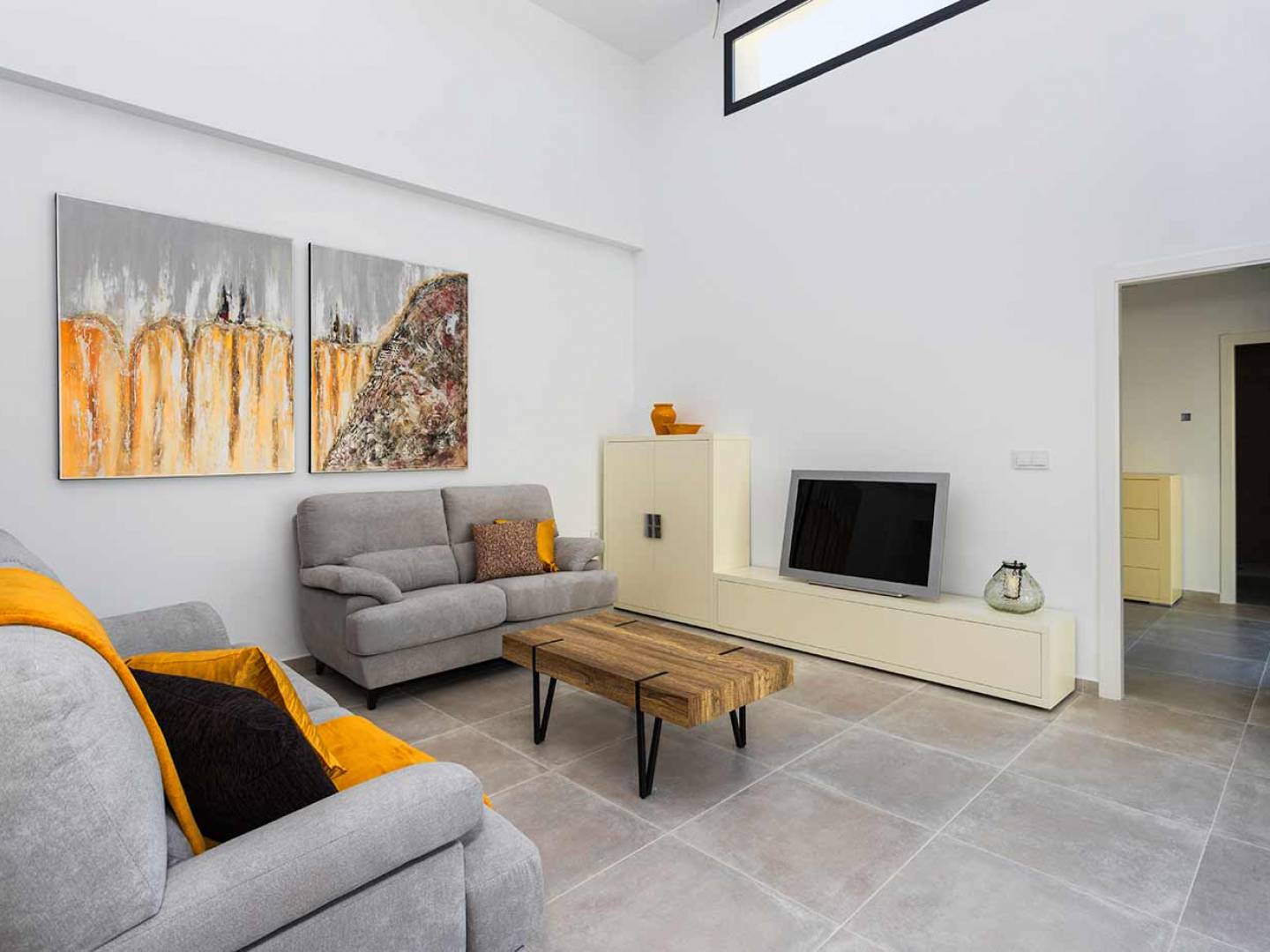 Les intérieurs de cette villa offrent confort et style. Judicieusement agencés, ils disposent d'armoires encastrées, de cuisines modernes et de pré-installations pour l'air conditionné et la TV/SAT/TEL. De plus, les fenêtres sont équipées de stores, ce qui permet un contrôle optimal de la lumière. Les espaces sont lumineux et fonctionnels, parfaits pour une vie confortable. La villa comprend également un parking privé et se trouve à proximité de la plage, ce qui en fait un choix idéal.