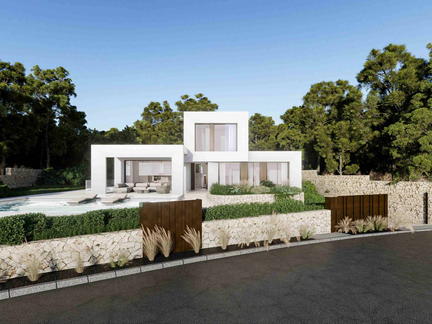 L'extérieur de la villa est conçu pour maximiser le plaisir du climat méditerranéen. La propriété comprend un jardin privé et une terrasse, parfaits pour se détendre ou recevoir des invités. De plus, elle dispose d'un solarium qui offre un espace supplémentaire pour profiter du soleil et des vues sur l'environnement naturel. La villa dispose également d'une piscine privée, idéale pour se rafraîchir pendant les chaudes journées d'été. Le design extérieur est complété par la présence d'un garage, offrant confort et sécurité pour le stationnement des véhicules.