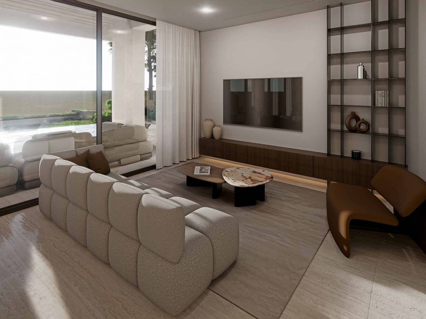 L'intérieur de la villa est équipé de caractéristiques modernes et de haute qualité. Le sol en grès cérame ajoute une touche d'élégance et de durabilité aux espaces. La propriété est équipée de la climatisation, garantissant un confort tout au long de l'année. Les volets électriques et le vidéophone ajoutent un niveau supplémentaire de confort et de sécurité. De plus, la villa dispose d'un système domotique, permettant le contrôle intelligent de diverses fonctions de la maison. Les appareils inclus assurent que la cuisine est prête à l'emploi dès le premier jour.