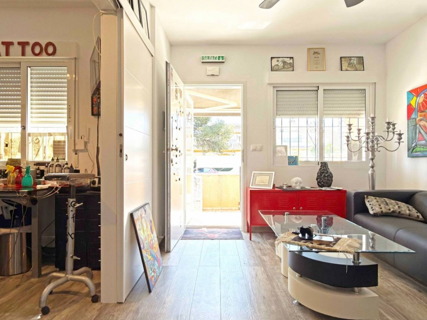 Situé en plein cœur de La Zenia, ce bungalow magnifiquement rénové offre une opportunité rare d'acquérir un bien polyvalent à deux pas de la plage et du boulevard Zenia. Récemment rénové, il bénéficie d'un nouveau revêtement de sol, de fenêtres modernes, d'une cuisine modernisée et d'une salle de bains élégante, créant ainsi un cadre de vie lumineux et contemporain. Le bungalow comprend deux chambres et une salle de bains, de plain-pied, pour un confort optimal. À l'extérieur, une terrasse de plain-pied exposée plein sud avec parking privé vous permettra de profiter pleinement du climat méditerranéen tout au long de l'année. La propriété dispose également d'un porche couvert et d'une terrasse privative sur le toit, offrant un espace extérieur supplémentaire pour se détendre, bronzer ou recevoir. Actuellement utilisé comme studio de tatouage, le bungalow peut être facilement reconverti en habitation avec peu ou pas de modifications, ce qui en fait une opportunité intéressante pour les particuliers comme pour les investisseurs. Grâce à son emplacement privilégié à La Zenia, à proximité des plages, des restaurants, des commerces et de toutes les commodités, ce bien représente une excellente opportunité pour une résidence secondaire, une résidence principale ou un projet commercial sur la Costa Blanca.