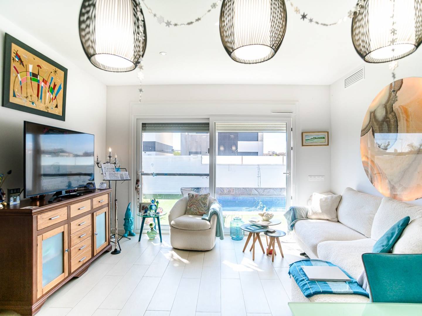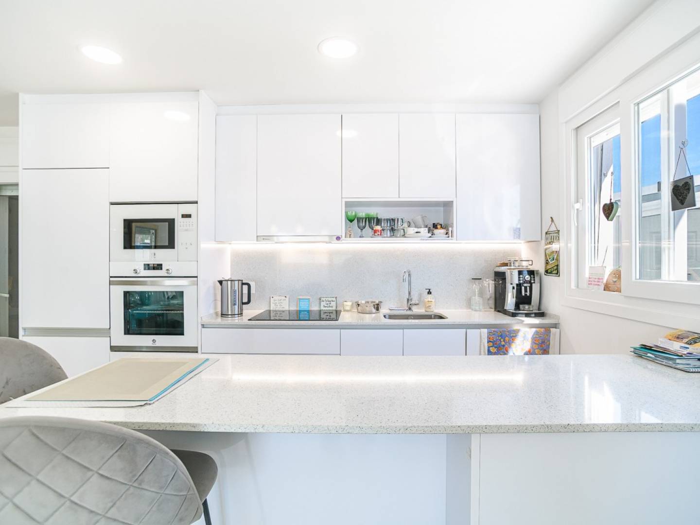 L' extérieur de la villa a été conçu pour profiter pleinement du climat exceptionnel de la Costa Blanca . L'élégant jardin privé comprend un coin salon accueillant et une piscine privée , véritable havre de paix où vous pourrez vous détendre en toute intimité. La propriété inclut également un espace couvert supplémentaire , idéal comme maison d'amis, salle de jeux ou salon additionnel , ainsi qu'un débarras pratique situé derrière la cuisine.