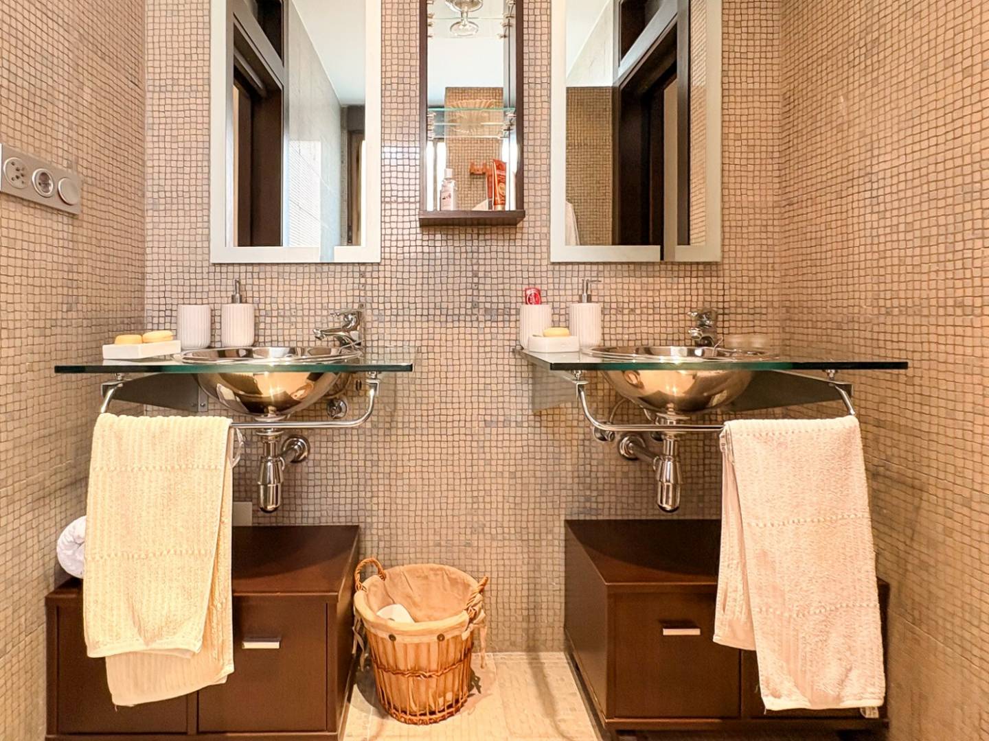 L'extérieur de la villa a été conçu pour offrir de multiples espaces. La maison est entourée de terrasses sur tout son périmètre , comprenant un espace barbecue , une douche extérieure et un magnifique jardin anglais aménagé au sous-sol , ce qui ajoute du caractère et du cachet à la propriété.