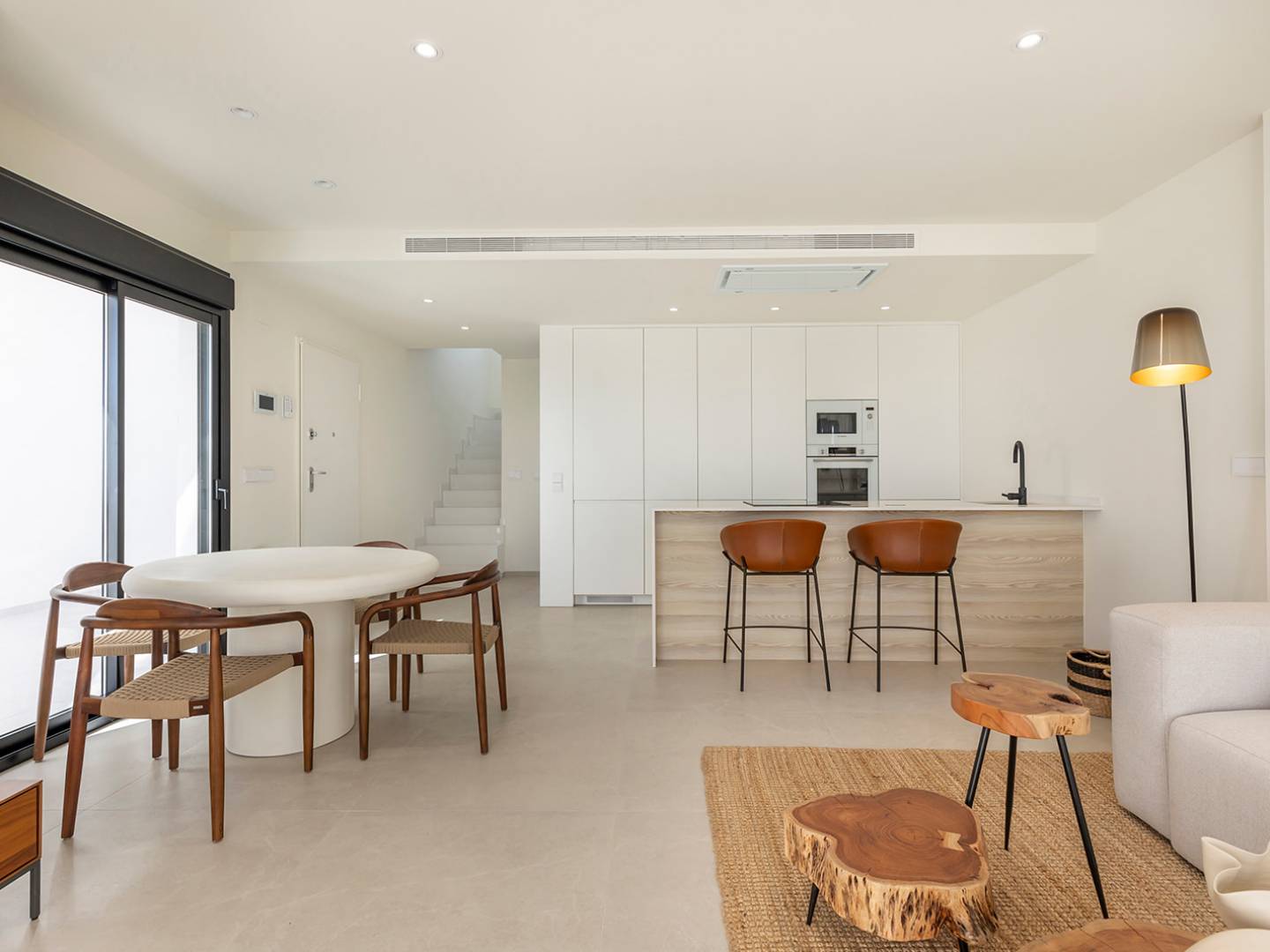 Les maisons disposent d'intérieurs à la fois élégants et fonctionnels, complétés par des jardins et terrasses privés. Ces espaces extérieurs sont parfaits pour dîner au soleil ou simplement se détendre à l'air frais. Un solarium spacieux ajoute une touche de luxe, créant un endroit serein pour se détendre en toute intimité. Chaque propriété est équipée de la climatisation, garantissant un environnement de vie confortable tout au long de l'année. La présence d'un garage offre un stationnement sécurisé et pratique pour les propriétaires.