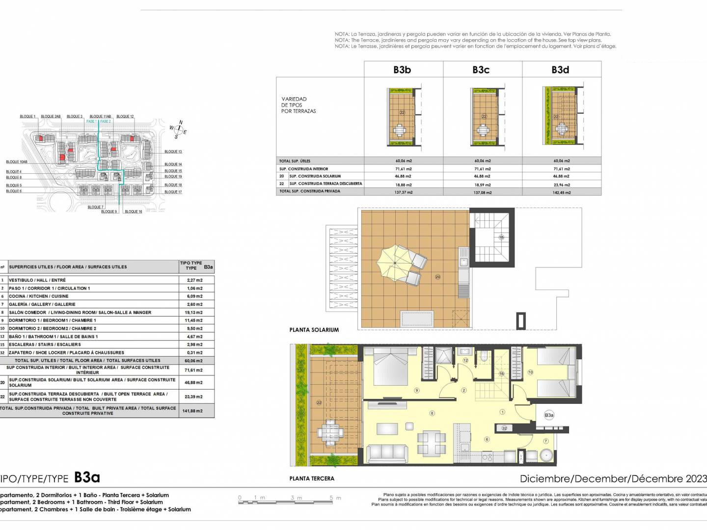 Les extérieurs de ces propriétés sont conçus pour maximiser le confort et le plaisir du climat méditerranéen. De nombreuses propriétés disposent de terrasses et de jardins privés, idéaux pour se détendre ou profiter de repas en plein air. De plus, certaines propriétés offrent des solariums, parfaits pour bronzer en toute intimité. La présence de piscines privées dans certaines typologies ajoute une touche de luxe et d'exclusivité. Les propriétés sont également équipées de pergolas, qui apportent ombre et style aux espaces extérieurs. La possibilité de recharger des véhicules électriques est un ajout moderne qui reflète un engagement envers la durabilité.