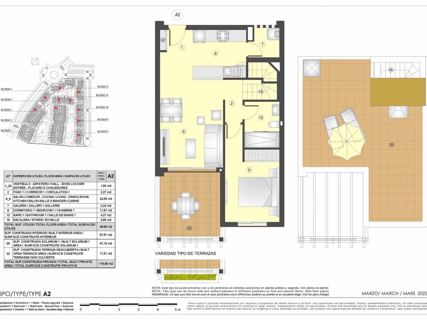Les extérieurs de ce résidentiel à Pulpí sont conçus pour offrir un environnement agréable et fonctionnel. Les logements disposent de terrasses et de jardins privés, offrant un espace extérieur parfait pour profiter du climat méditerranéen. De plus, certaines typologies incluent un solarium, idéal pour ceux qui souhaitent un espace supplémentaire pour se détendre ou socialiser. La proximité de la mer, à seulement 1 km, permet de profiter de la brise marine et de vues spectaculaires depuis de nombreuses propriétés. Cet environnement extérieur est pensé pour compléter le style de vie détendu et confortable qu'offre l'emplacement à Pulpí.