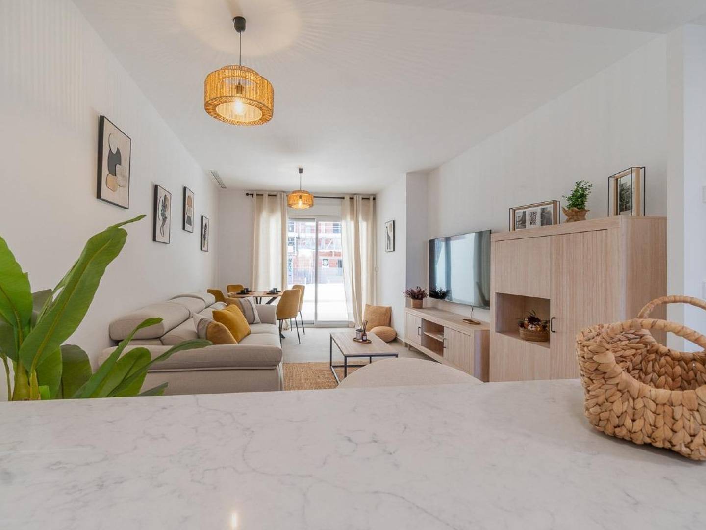 Rez-de-chaussée neuf exclusif à Playa Flamenca Location longue durée~~Nous vous présentons ce rez-de-chaussée moderne, neuf et jamais habité, situé dans la zone très prisée de Playa Flamenca, dans la commune dOrihuela Costa. Avec une surface construite denviron 123 m2 et un design contemporain, ce bien est le choix idéal pour ceux qui recherchent un logement confortable et stable dans lune des zones les plus attractives de la Costa Blanca.~~Le bien dispose de deux grandes chambres doubles, parfaites pour garantir intimité et repos, ainsi que de deux salles de bains complètes conçues pour offrir un confort optimal au quotidien.~~Lun des principaux atouts de cette propriété est sa grande terrasse privée denviron 39 m2, idéale pour profiter du climat méditerranéen toute lannée, que ce soit pour se détendre ou recevoir des invités dans un environnement calme et privé.~~Sagissant dun bien neuf, il est en parfait état et bénéficie de finitions modernes de haute qualité. De plus, le mobilier est entièrement neuf, garantissant un confort immédiat sans souci.~~Le logement est également équipé de la climatisation centrale, assurant un confort optimal en été comme en hiver.~~En complément, la propriété inclut une place de parking dans un garage souterrain collectif ainsi quun espace de stockage, apportant un réel confort au quotidien.~~Cette location longue durée, proposée à 1 250 € par mois, représente une opportunité idéale pour ceux qui recherchent stabilité et qualité de vie dans un emplacement privilégié proche de la mer. Ne manquez pas cette occasion unique de profiter de votre nouveau logement sur la Costa Blanca.~