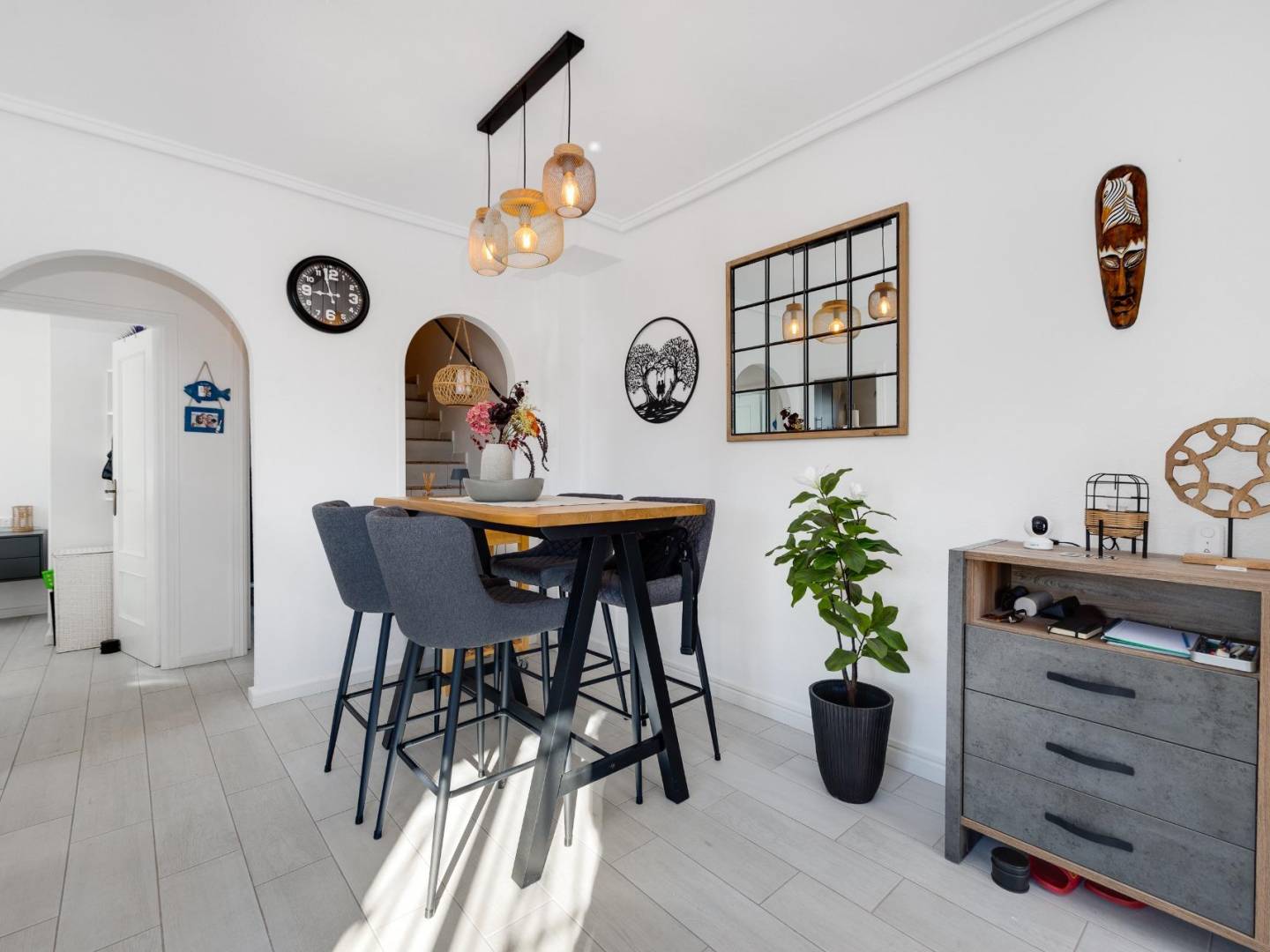 Nous vous présentons cette élégante maison de ville d'angle à Los Altos , idéale comme résidence principale ou secondaire sur la Costa Blanca . Entièrement meublée , elle comprend trois chambres spacieuses et deux salles de bains modernes , offrant confort et fonctionnalité à toute la famille. La propriété bénéficie d'une grande terrasse privée , parfaite pour profiter du climat méditerranéen toute l'année, avec un porche accueillant et une allée privée. Elle comprend également une buanderie et un cellier , offrant un espace de rangement supplémentaire. Au premier étage, vous trouverez une grande terrasse idéale pour se détendre et un accès à un solarium privé avec vue imprenable , un atout majeur de la propriété. Le complexe propose des piscines communes , des espaces verts et des courts de paddle-tennis gratuits pour les résidents , situés à seulement 300 mètres de la maison. La propriété comprend également une place de parking privée numérotée , garantissant commodité et sécurité. Son emplacement est excellent, à seulement 10 minutes de Torrevieja et tout près de La Zenia et de ses plages , ainsi que de toutes les commodités, restaurants et zones commerçantes. Une opportunité immobilière idéale sur la Costa Blanca pour ceux qui recherchent soleil, tranquillité, intimité et qualité de vie .