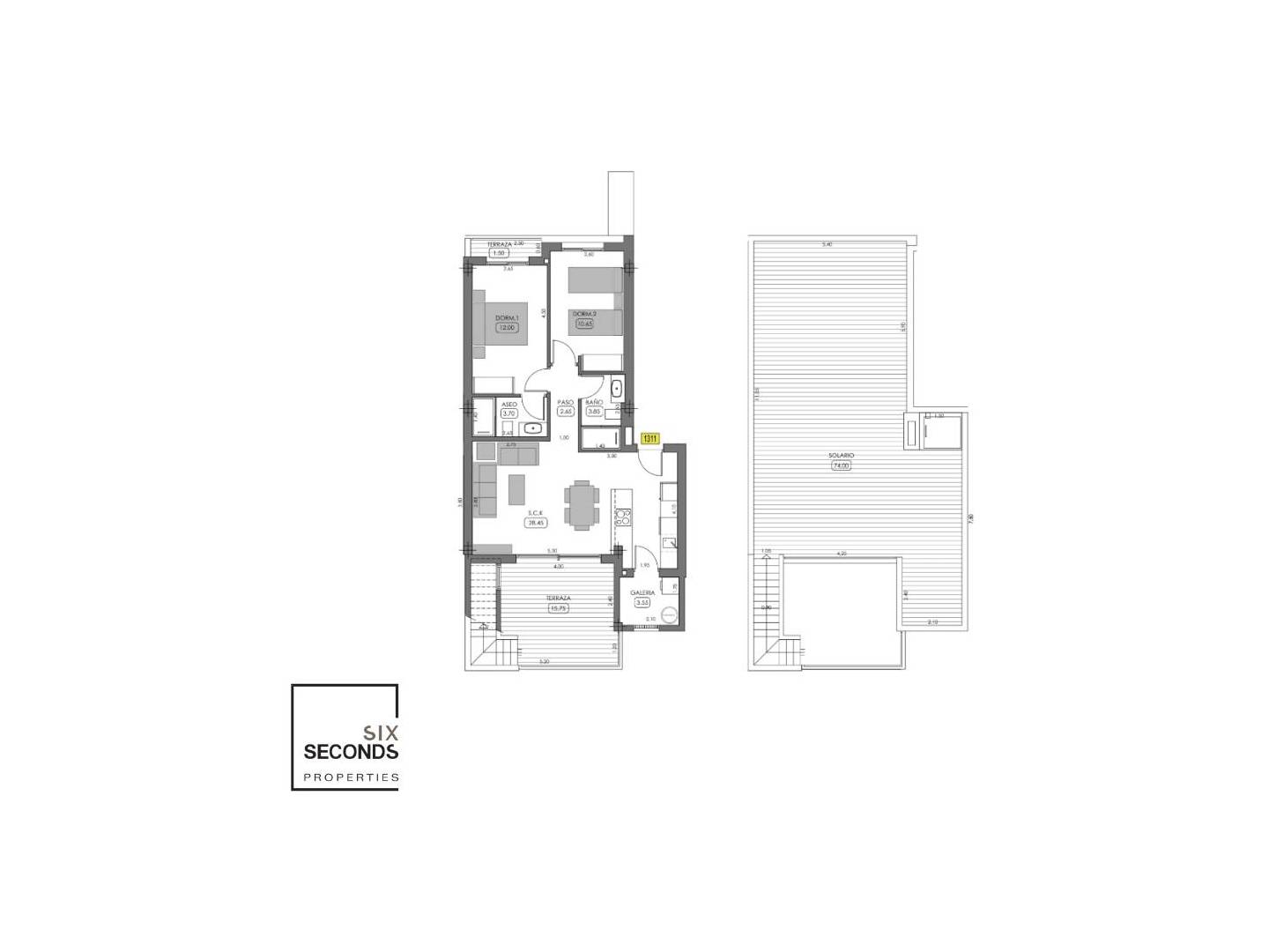 Dit appartement op de eerste verdieping heeft een woonoppervlakte van 73 m2, met een ruim solarium van 74 m2 en de mogelijkheid tot een jacuzzi waar u heerlijk van de zon kunt genieten en kunt genieten van het heerlijke klimaat van de Costa Blanca.