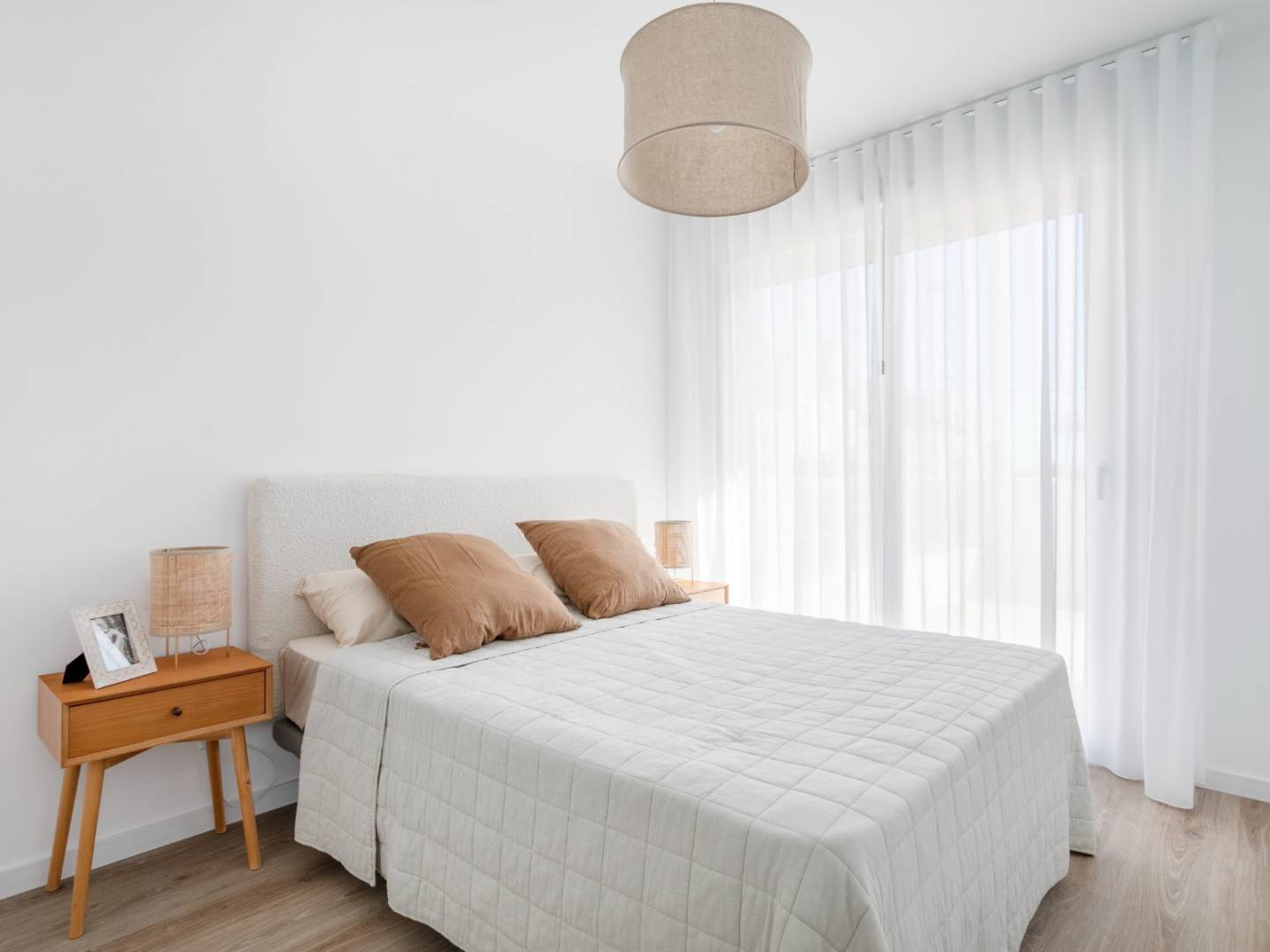 De appartementen met 2 of 3 slaapkamers en 2 badkamers hebben een nette indeling en bieden uitzicht op de gemeenschappelijke ruimtes, de prachtige natuur of de zee, evenals het privézwembad en de tuinen van de urbanisatie.