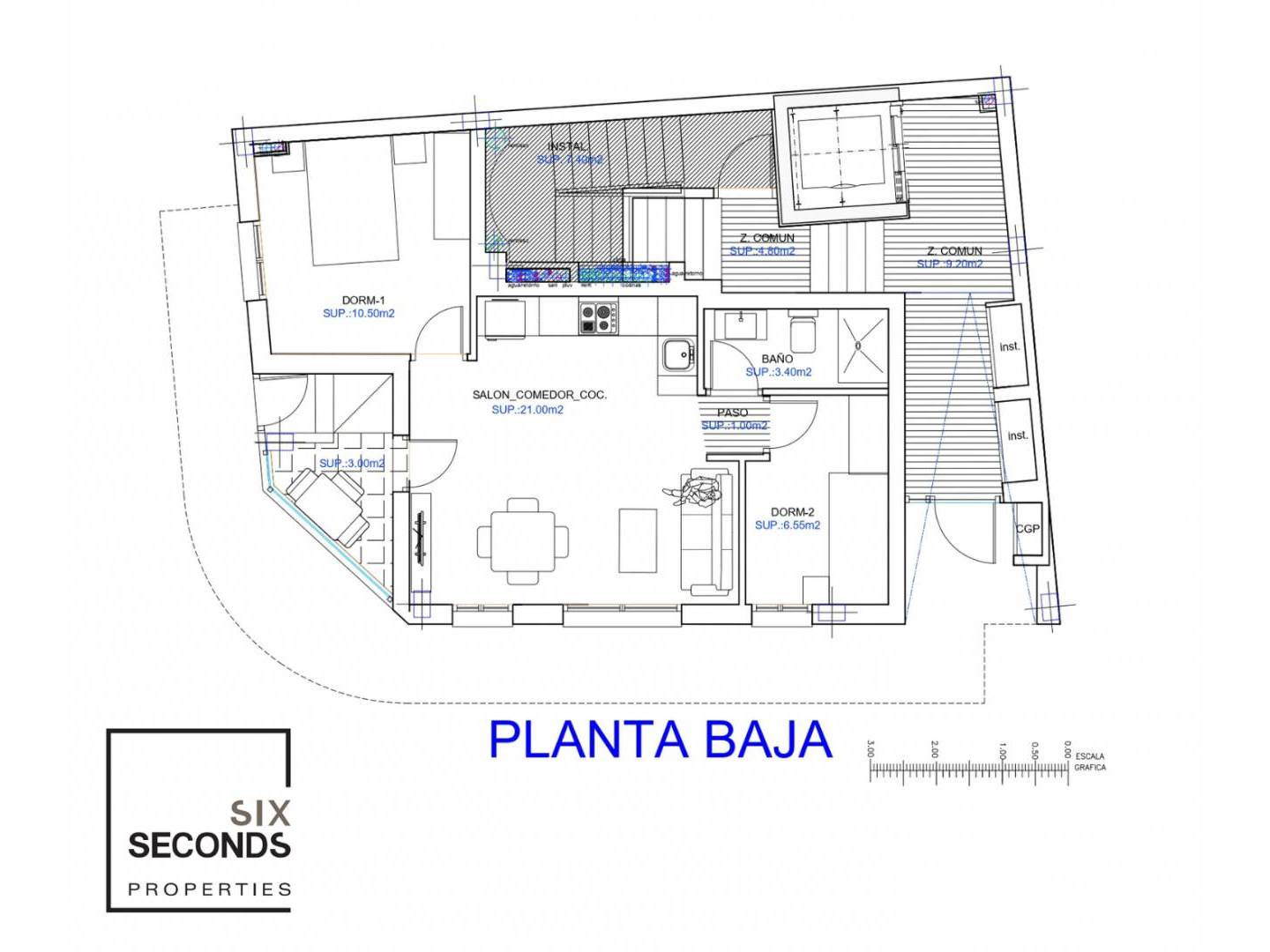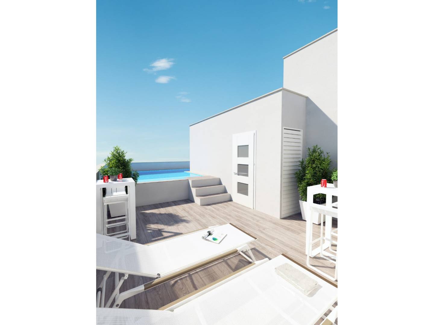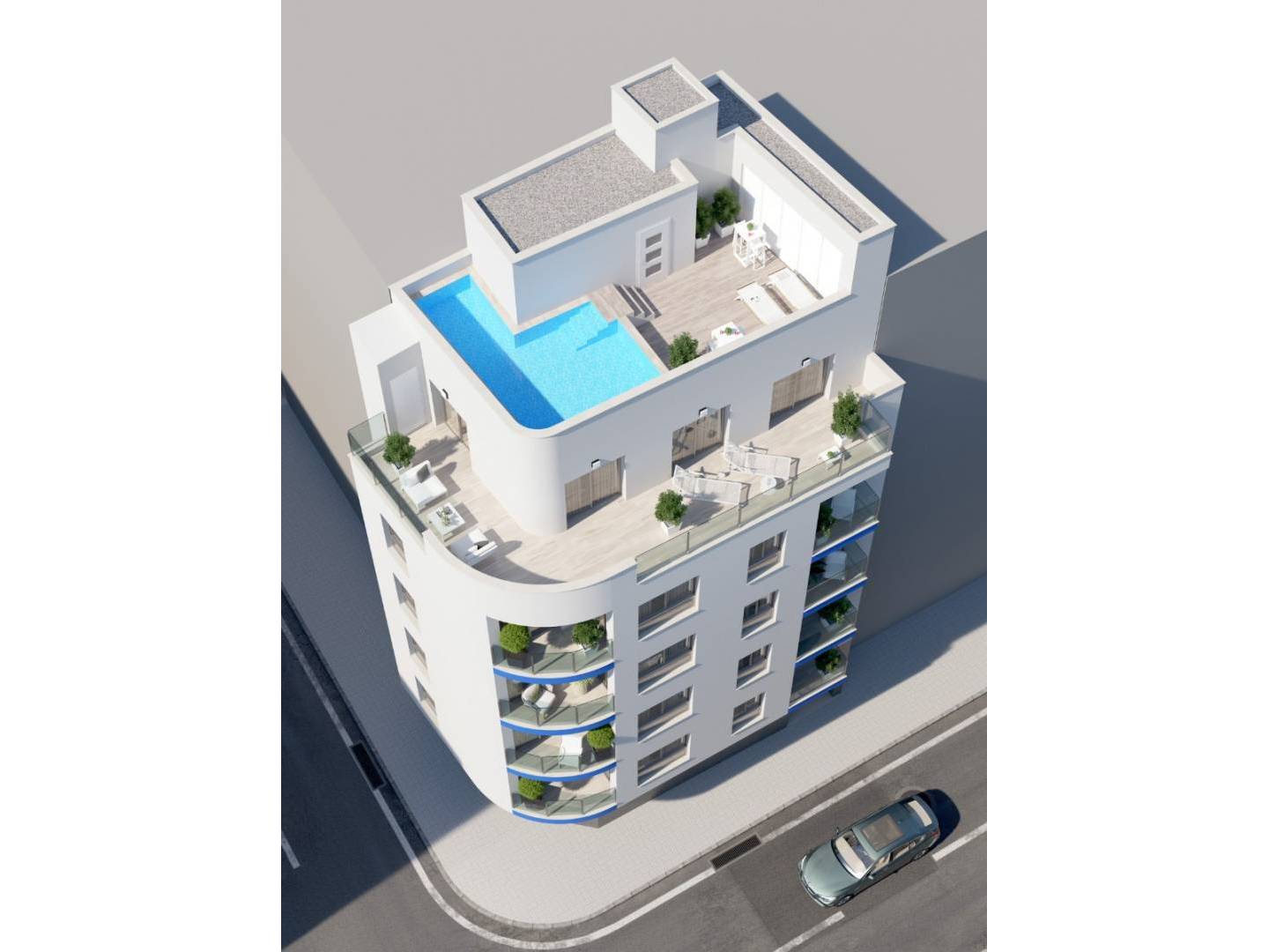 Deze uitstekende woonwijk telt 10 woningen, twee per verdieping, met uitzondering van de begane grond en de zolder . De appartementen hebben 1 of 2 slaapkamers en 1 badkamer, met terrassen en een verfrissend gemeenschappelijk zwembad op het dak van het gebouw.