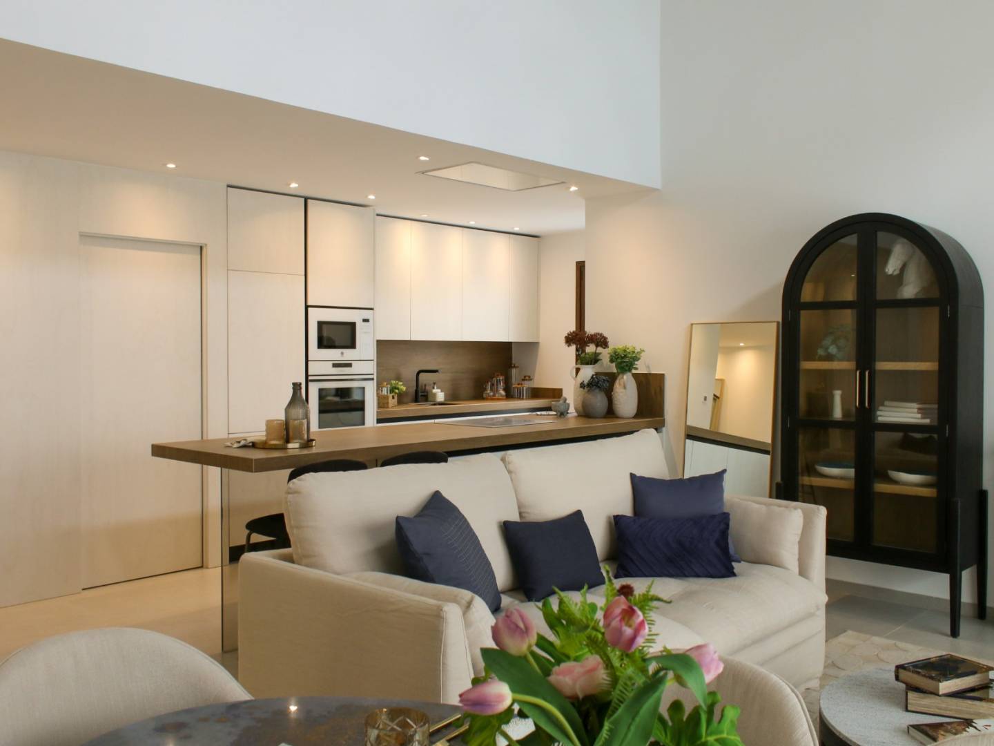 De villa's hebben een unieke plattegrond met een master bedroom met kleedkamer en eigen dubbele badkamer, 2 slaapkamers (waarvan één met mogelijkheid tot studeerkamer), een badkamer en een ruime woon-eetkamer met open keuken en toegang tot de veranda-terras.