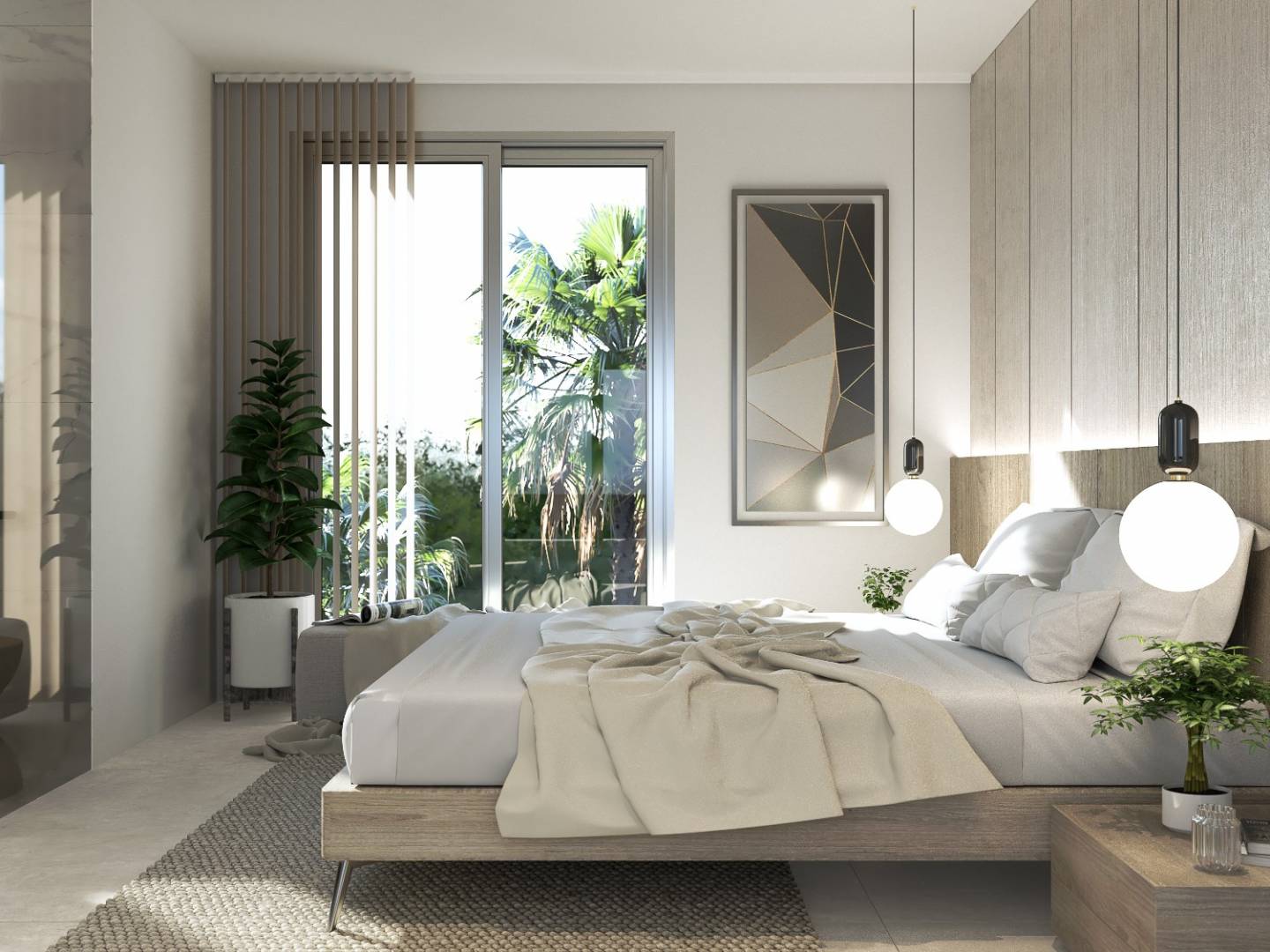 Concreet is dit appartement een model met 3 slaapkamers, gelegen op de eerste verdieping met een eigen terras. Alle flats hebben een open ruimte tussen keuken en woonkamer, inbouwkast en dressing in de slaapkamers, en twee badkamers waarvan één badkamer bij de master bedroom.