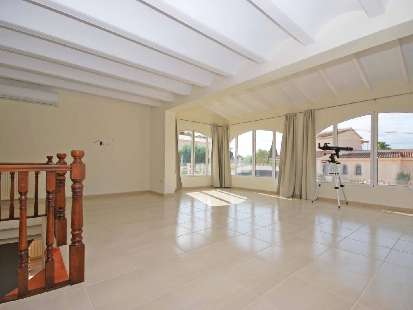 Er is ook een slaapkamer en een badkamer op de begane grond, ideaal voor wie geen zin heeft om de trap op te gaan. Als u liever geniet van een panoramisch uitzicht, brengt de interne trap u naar een lichte woonkamer met een balkon dat een indrukwekkend uitzicht biedt op de bergen en de zee. Daarnaast is er een groot terras aan de achterzijde met uitzicht op het zwembad. Verder vind je op deze verdieping nog 3 slaapkamers en een badkamer met ligbad.