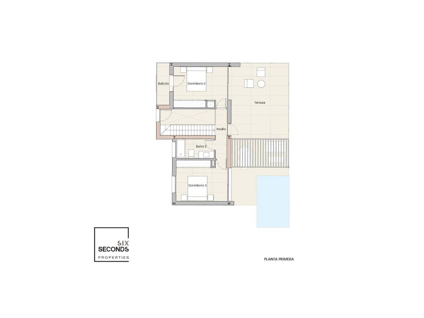 De tweede verdieping heeft 2 slaapkamers , waarvan één met een tweepersoonsbed, kleedkamer en een eigen badkamer. Een lichte gang leidt naar een solariumterras waar u kunt uitrusten en genieten van het prachtige uitzicht op Montgó. Alle kamers profiteren van overvloedig natuurlijk licht en dwarsventilatie.