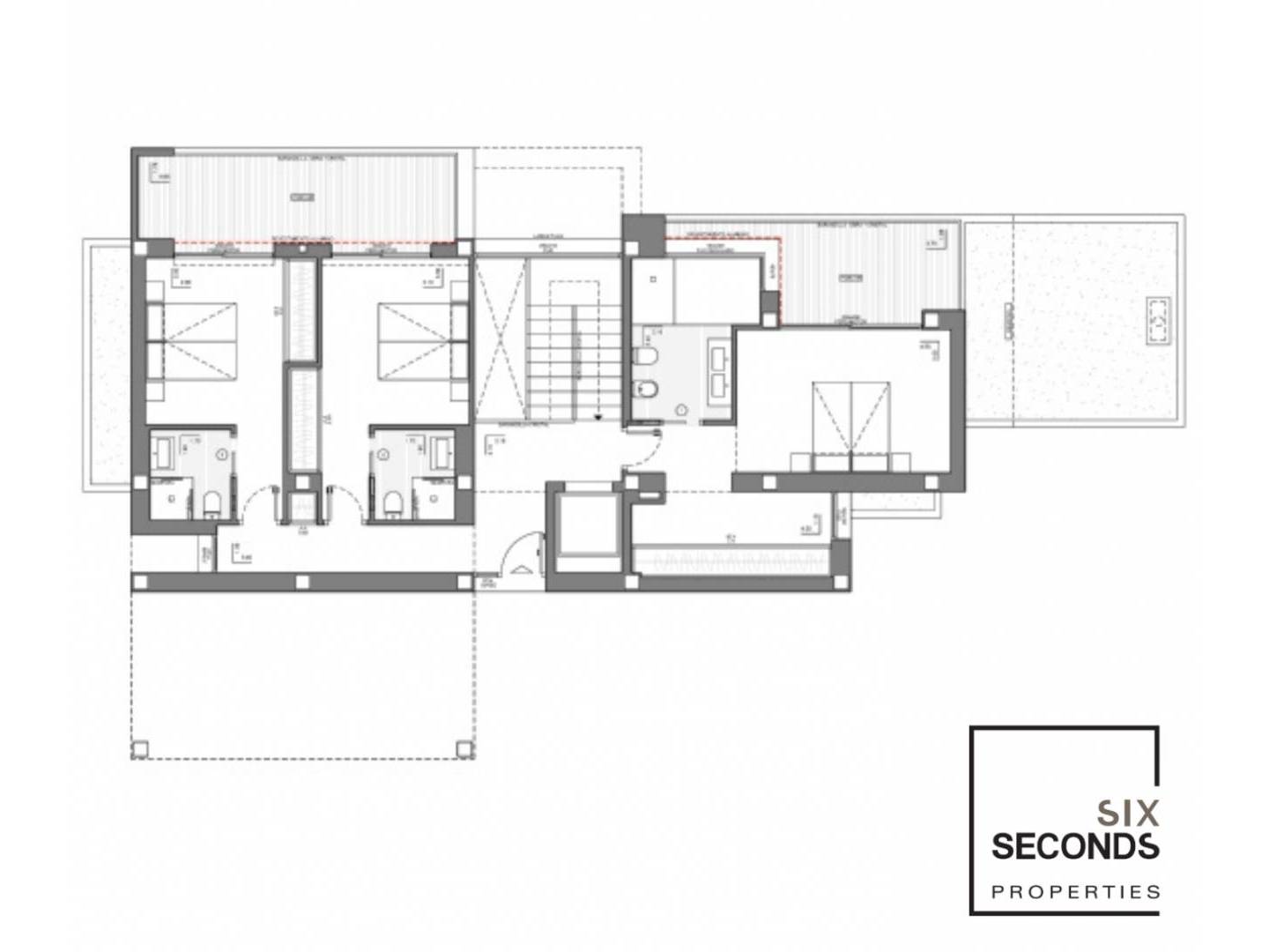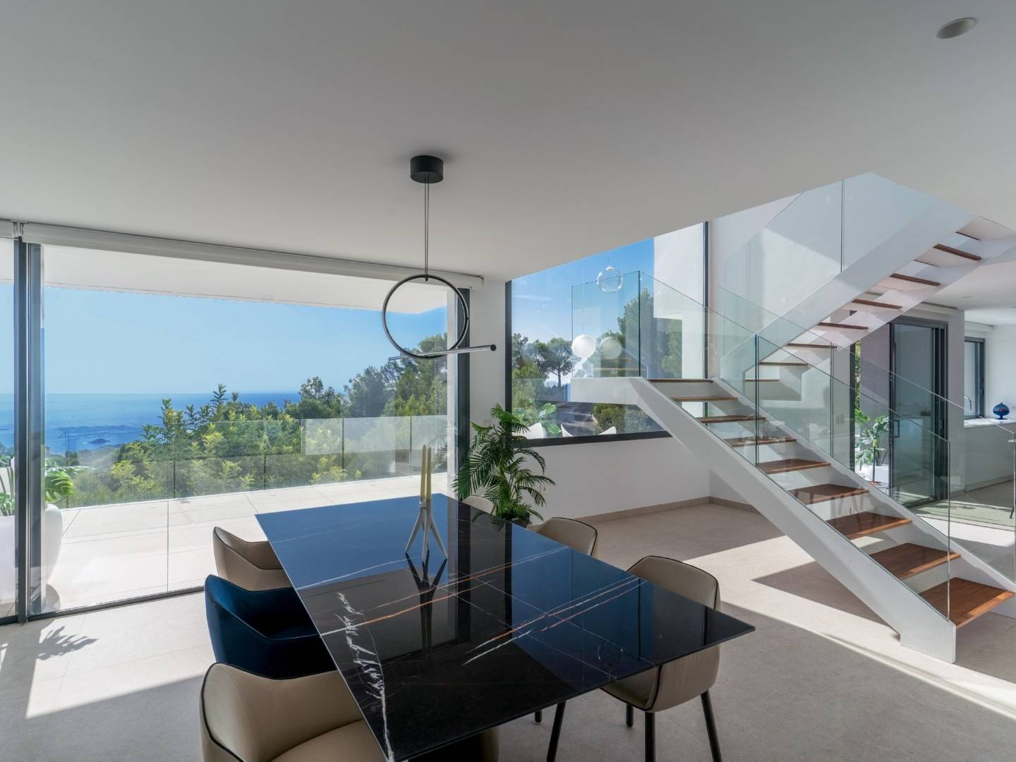 Toegang is vanaf de bovenverdieping waar we worden begroet door een groot raam met uitzicht op de zee, de centrale kern die communiceert met de rest van de verdiepingen, hetzij per lift of per trap en met parkeergelegenheid voor twee voertuigen. Op de middelste verdieping bevinden zich de drie slaapkamers van deze villa, waarvan twee met en-suite badkamers, grote kledingkasten en toegang tot een gedeeld terras. De derde slaapkamer, gebruikt als hoofdslaapkamer, is uitgerust met een grote kleedkamer, een aangrenzende badkamer met ligbad waar baden een ervaring van maximale ontspanning wordt, een eigen terras en het bed dat uitkijkt op de zee als je wakker wordt.