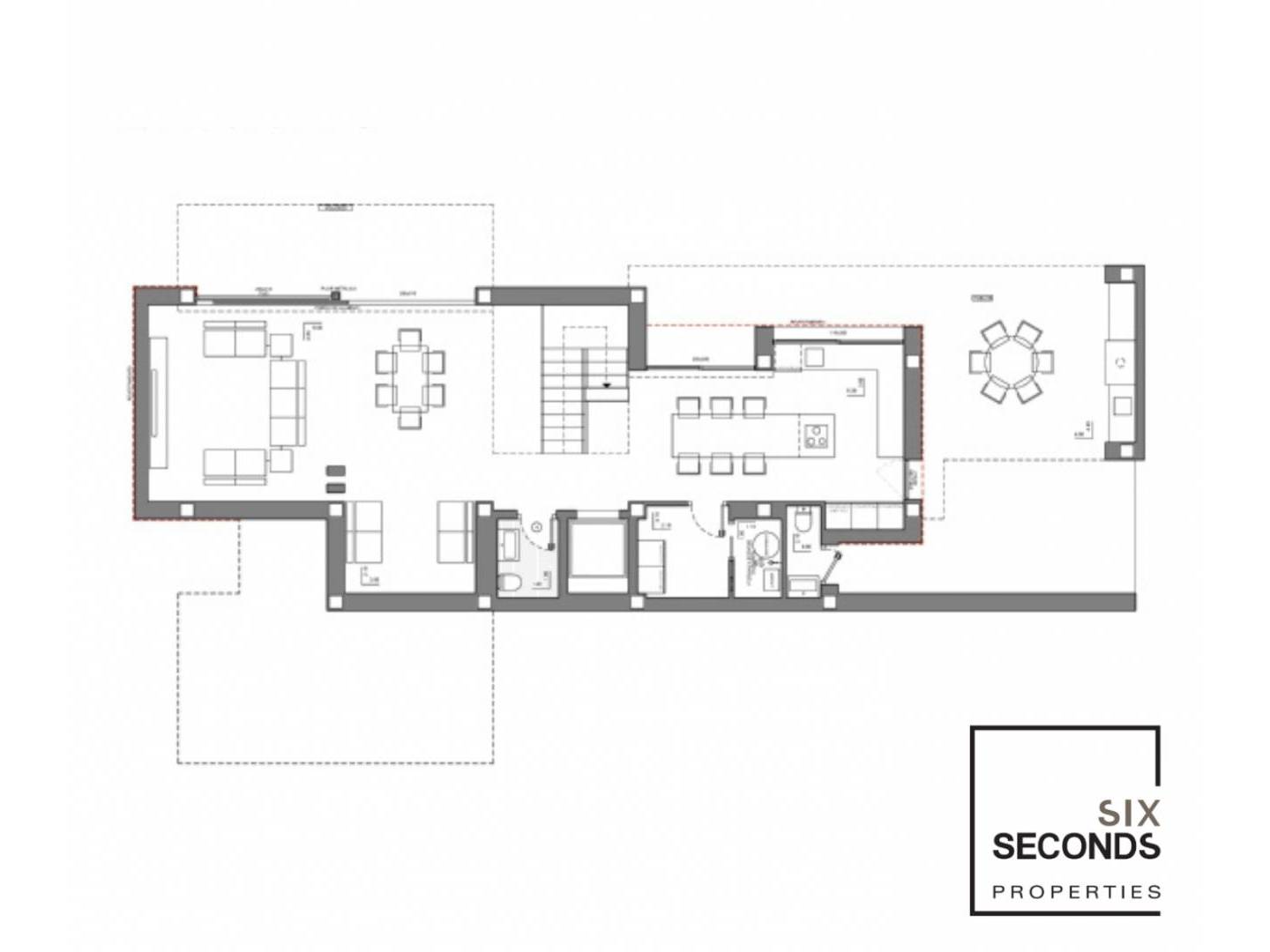 De begane grond voor de gemeenschappelijke ruimtes kan te allen tijde als eenpersoonskamer of als aparte kamers worden gebruikt. De keuken kenmerkt zich door het grote kookeiland met daarin het kookgedeelte en een plek om te ontbijten of een snelle hap te eten. Villa Tempo heeft nog twee andere ruimtes waar u kunt genieten van een meer ontspannen lunch of diner. De buiteneetkamer overdekt door een grote veranda met barbecue en de binneneetkamer die uitkomt op de woonkamer van het huis en het hoofdterras. Verschillende goed verbonden omgevingen: keuken, eetkamer, woonkamer binnen, woonkamer buiten, leeshoek en hoofdterras met een spectaculair en verfrissend overloopzwembad.