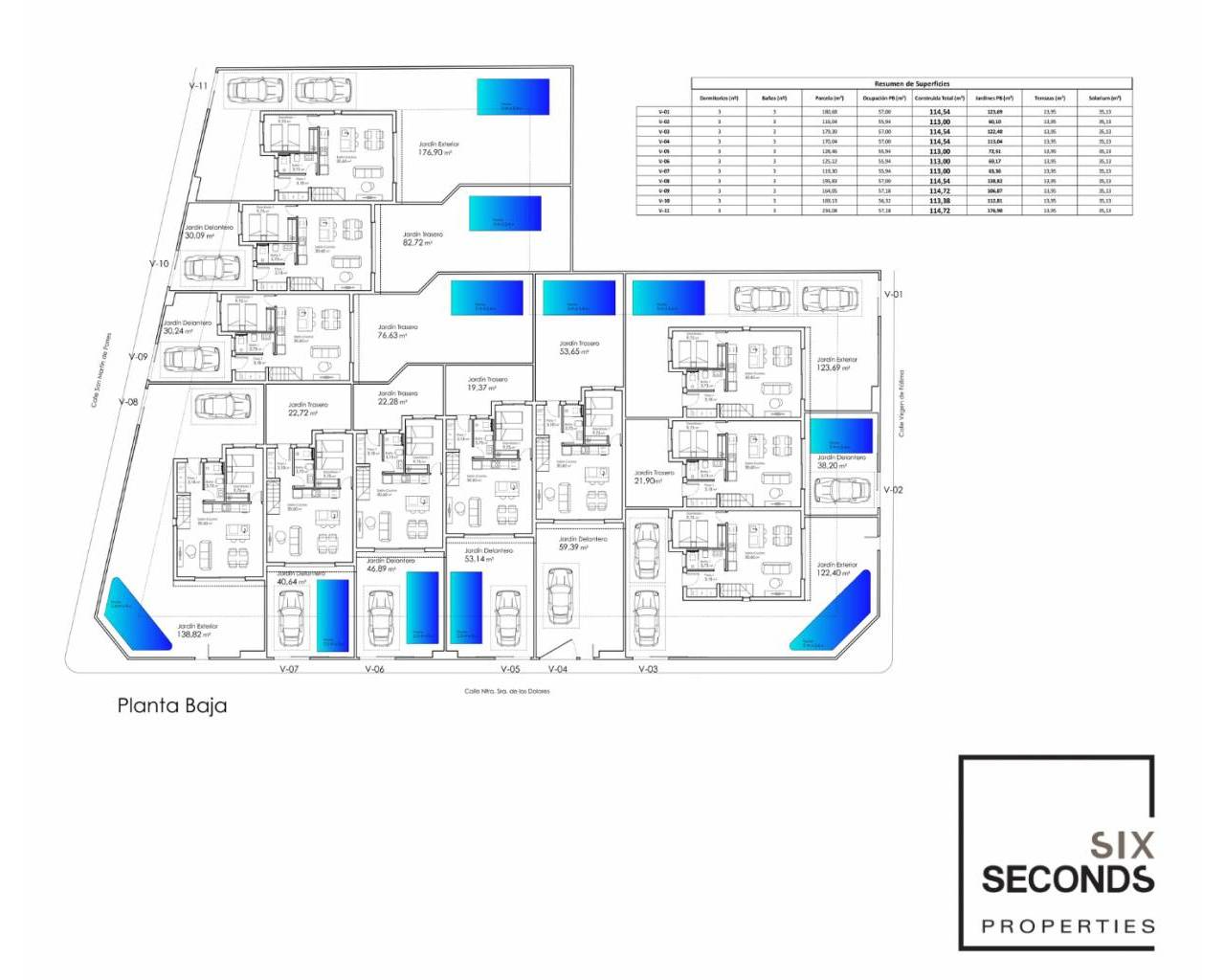 Deze woningen met 3 slaapkamers en 3 badkamers hebben een groot terras met tuin, parkeerplaats, fantastisch privé zwembad en solarium waar u kunt genieten van de zon van de Costa Cálida.