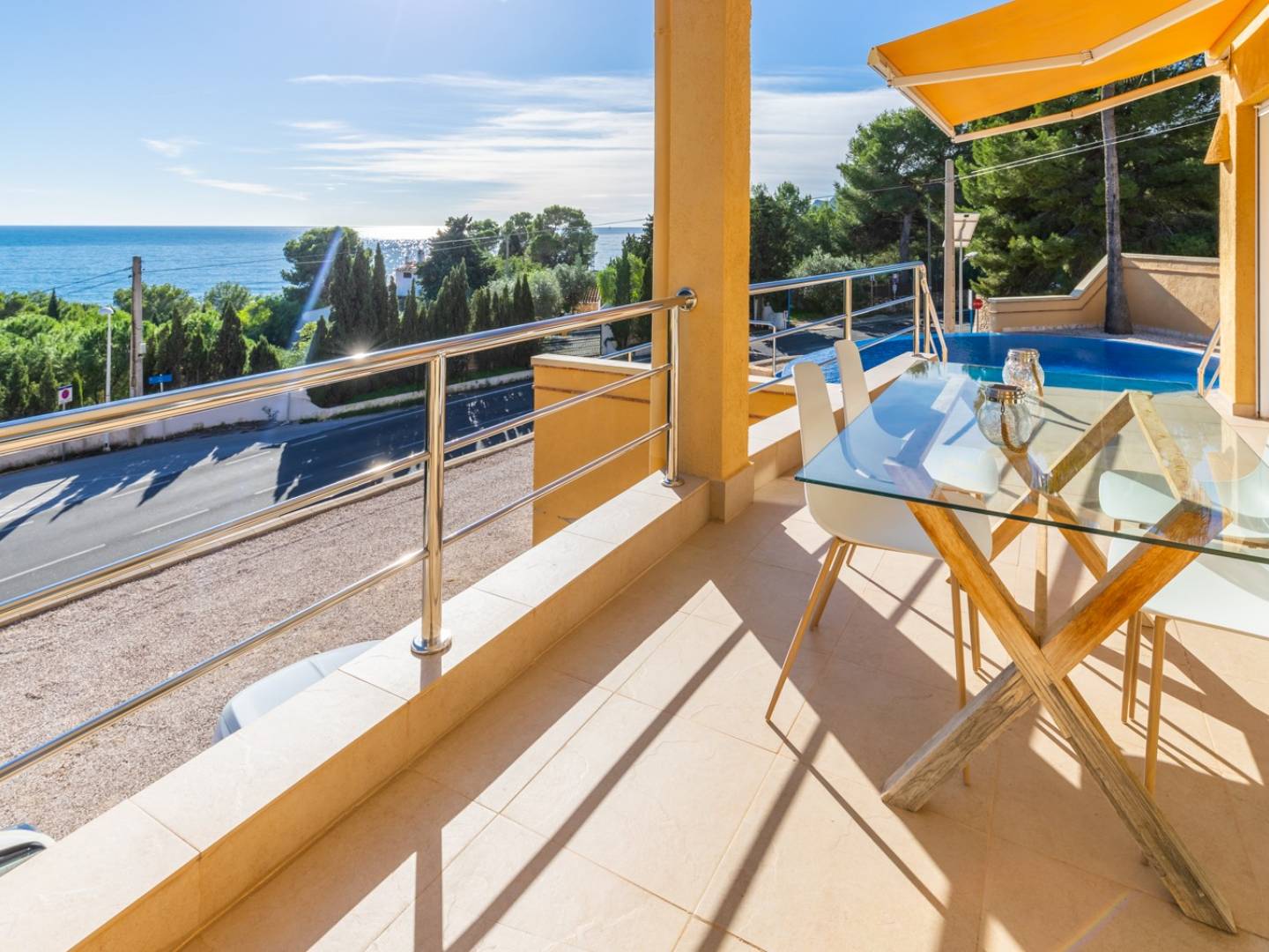Van bijzonder belang is het ongelooflijke panoramische uitzicht op zee vanuit de meeste kamers en vanaf alle terrassen, wat veel privacy biedt. Vanuit de prachtige buitenruimte met een houten pergola waar we kunnen schuilen voor de zomerse hitte en kunnen afkoelen in het fantastische overloopzwembad terwijl we ons voorstellen te dobberen in de Middellandse Zee zelf. De woonkamer is zeer ruim en bestaat uit een open woonkamer met open haard, eethoek en een volledig ingerichte moderne keuken. Boven is de master suite met het beste uitzicht van het hele huis, met toegang van buitenaf tot een eigen terras en een ruime badkamer met douche en hydromassagebad. Het pension bestaat uit een open woonkamer en een volledig uitgeruste keuken. Het heeft twee tweepersoonsslaapkamers met badkamer, evenals een eigen terras en een ontspanningsruimte.