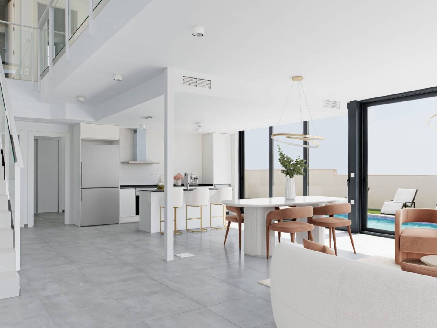 De keuken heeft een aanpasbare indeling. Het huis heeft een en -suite slaapkamer met een kleedkamer. Het wordt gekenmerkt door de enorme ramen , waarvan het belangrijkste doel is om zoveel mogelijk natuurlijk licht op te vangen, waardoor een comfortabele omgeving in huis wordt bereikt. Het heeft een dubbele hoogteverdeling , dit model is gebouwd op percelen vanaf 395 m2 . Naast een oneindig aantal diensten zoals een winkelcentrum, school, medische dienst, banken, enz...