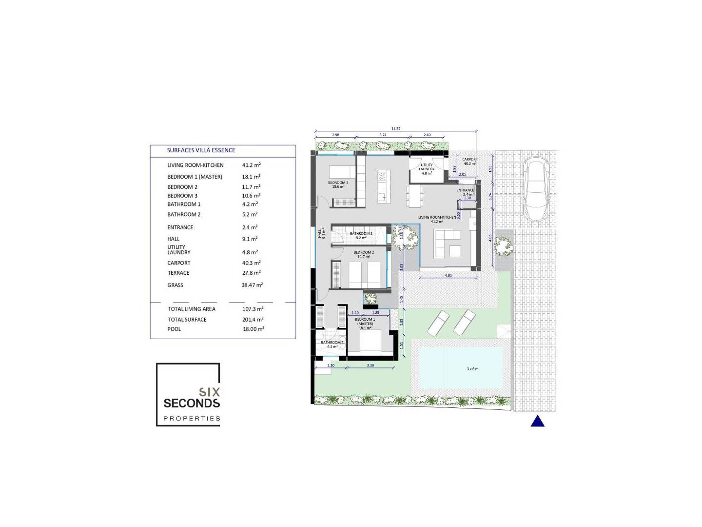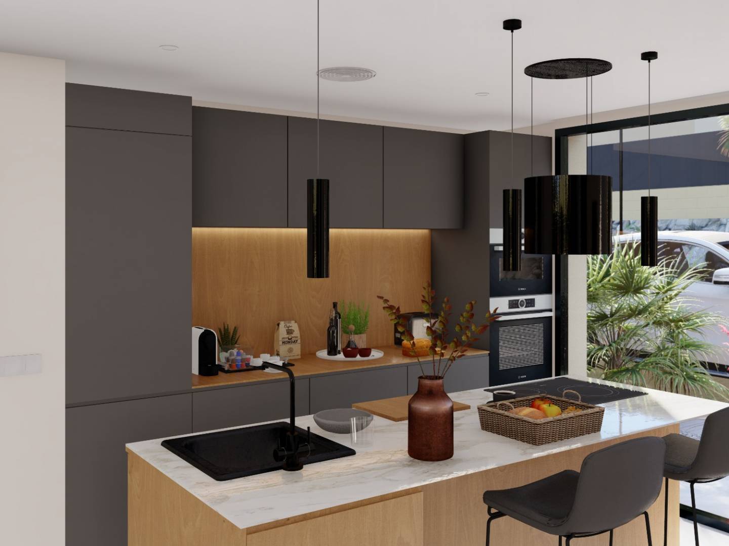 De woonoppervlakte bedraagt 192,4 m² en is ontworpen met elegantie en stijl in gedachten. De villa heeft een volledig uitgeruste moderne keuken, die perfect past in de ruime open woon- en eetkamer. Met grote ramen en glazen schuifdeuren wordt de villa overspoeld met natuurlijk licht en biedt een prachtig uitzicht op de tuin en het privézwembad van 4 x 8 m .