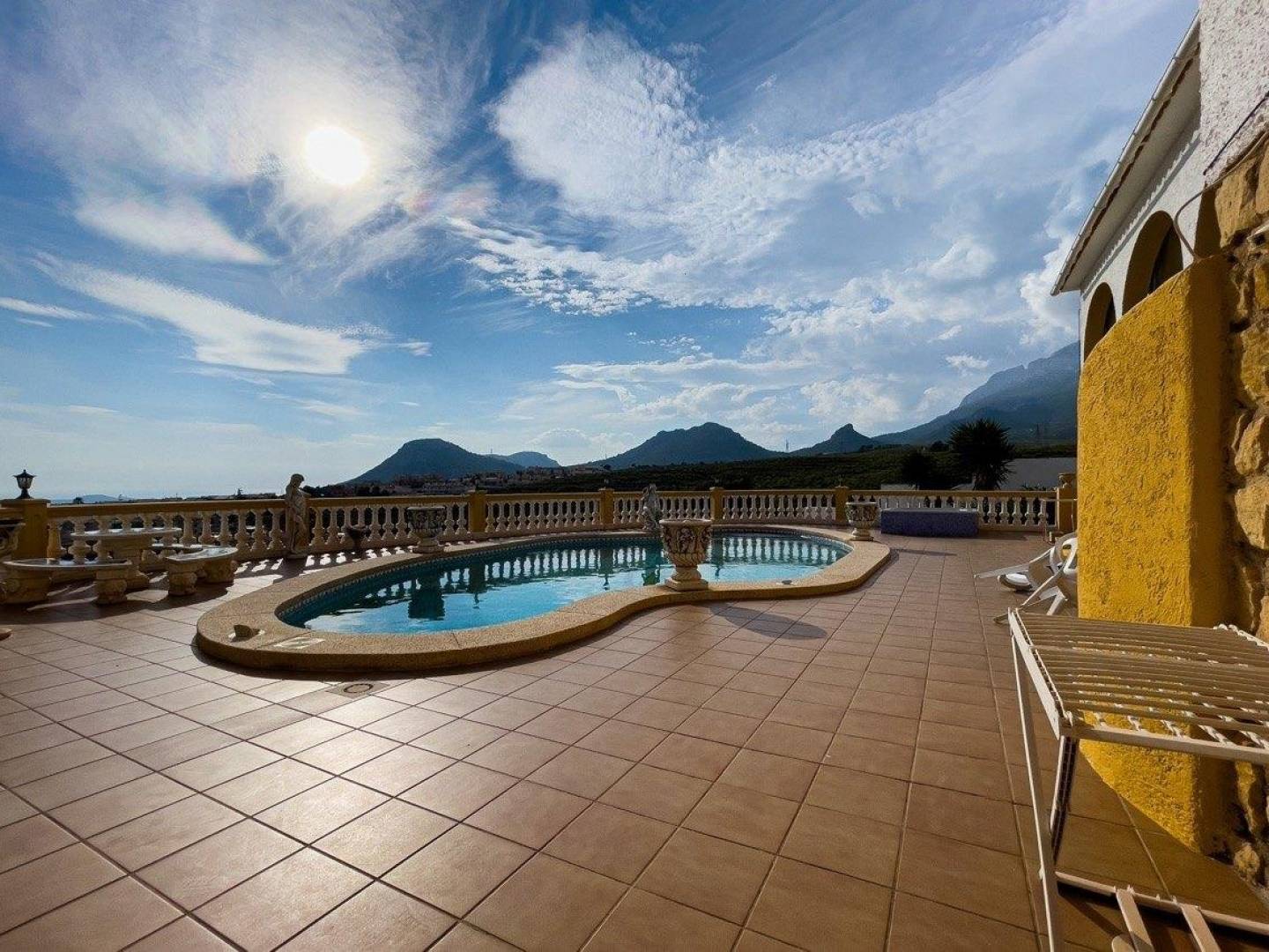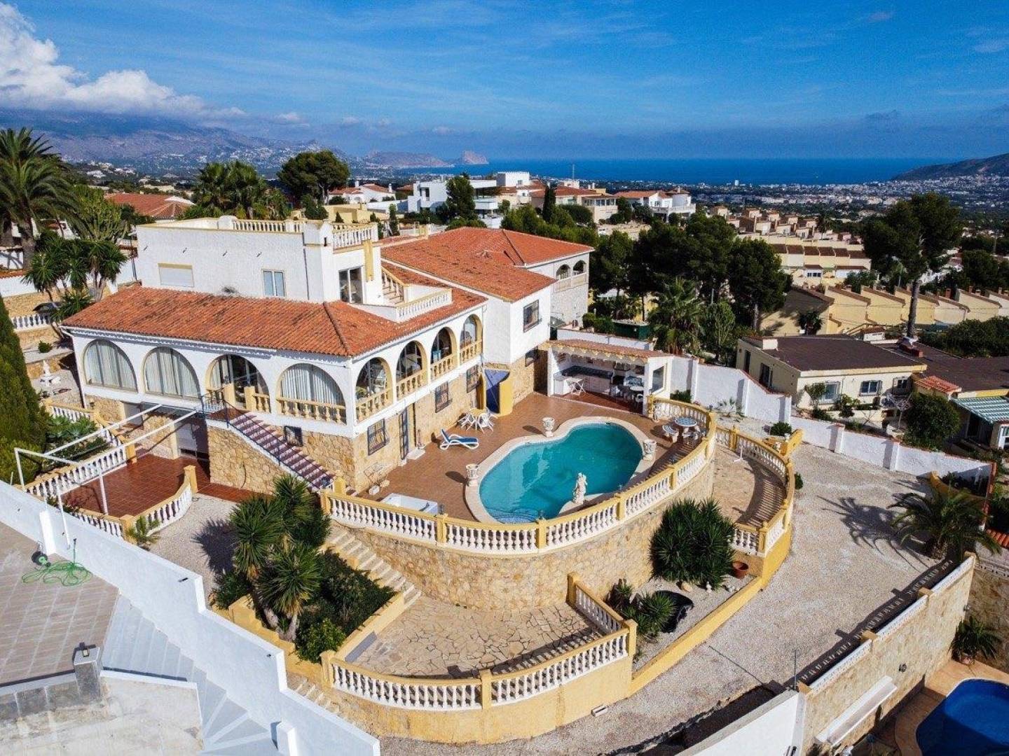 Gepresenteerd in La Nucía is een uitzonderlijke villa die bekend staat om zijn indrukwekkende panoramische uitzichten van 360 graden die zich uitstrekken van Benidorm tot Calpe en de majestueuze Sierra de Aitana .
