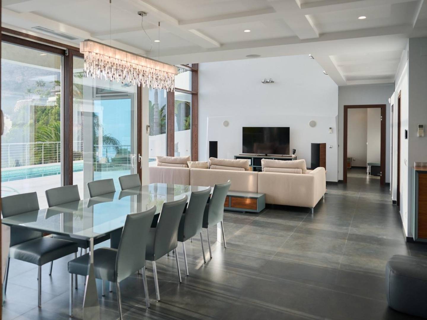 Aan de prestigieuze Costa Blanca valt een moderne en elegante villa majestueus op in het exclusieve Altea Hills- complex. Strategisch gelegen in de stilste en rustigste omgeving, ligt dit droomhuis op een groot perceel van 987 m2 en biedt privacy en een indrukwekkend panoramisch uitzicht.