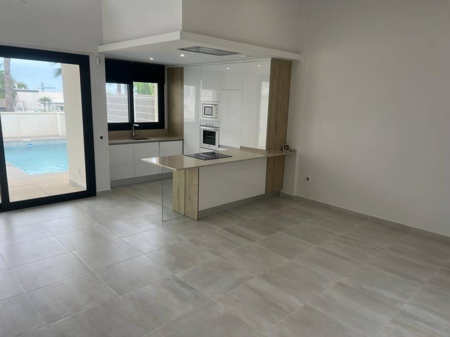 De prachtige moderne keuken , de ruime woon-eetkamer met grote ramen , het privézwembad van 7 x 3 m met LED- verlicht terras en het ruime solarium met mogelijkheid tot een buitenkeuken bieden een privéoase en nachtelijk uitzicht op het zoutmeer.