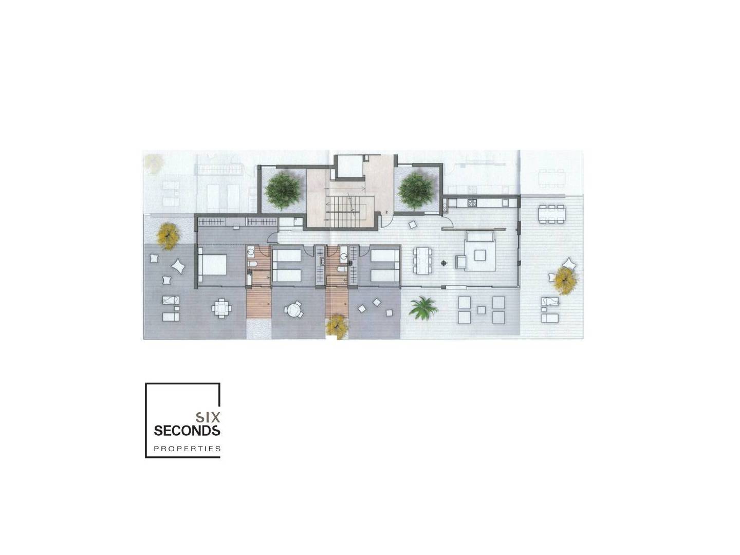 Het penthouse bevindt zich op de 4e verdieping met een zuidoostelijke oriëntatie. Het heeft een bebouwde oppervlakte van 113 m2 en een groot privésolarium van ruim 141 m2 om te genieten van het uitzicht en de mediterrane zon. Het is perfect om te ontspannen met een glas wijn, te luisteren naar het geluid van de golven en de zeebries te voelen .