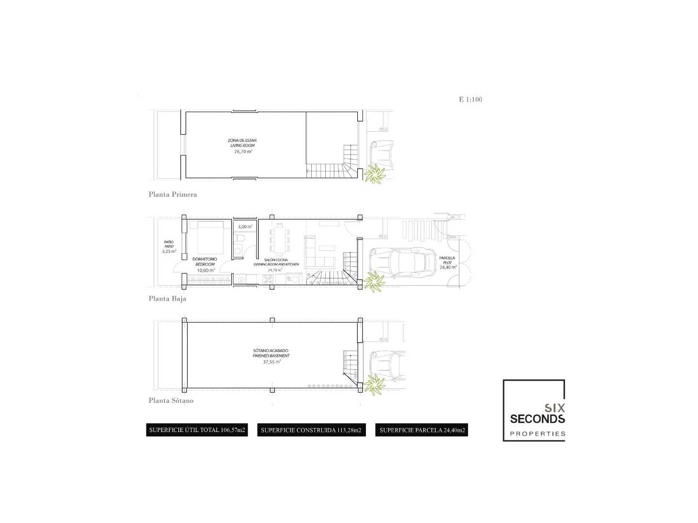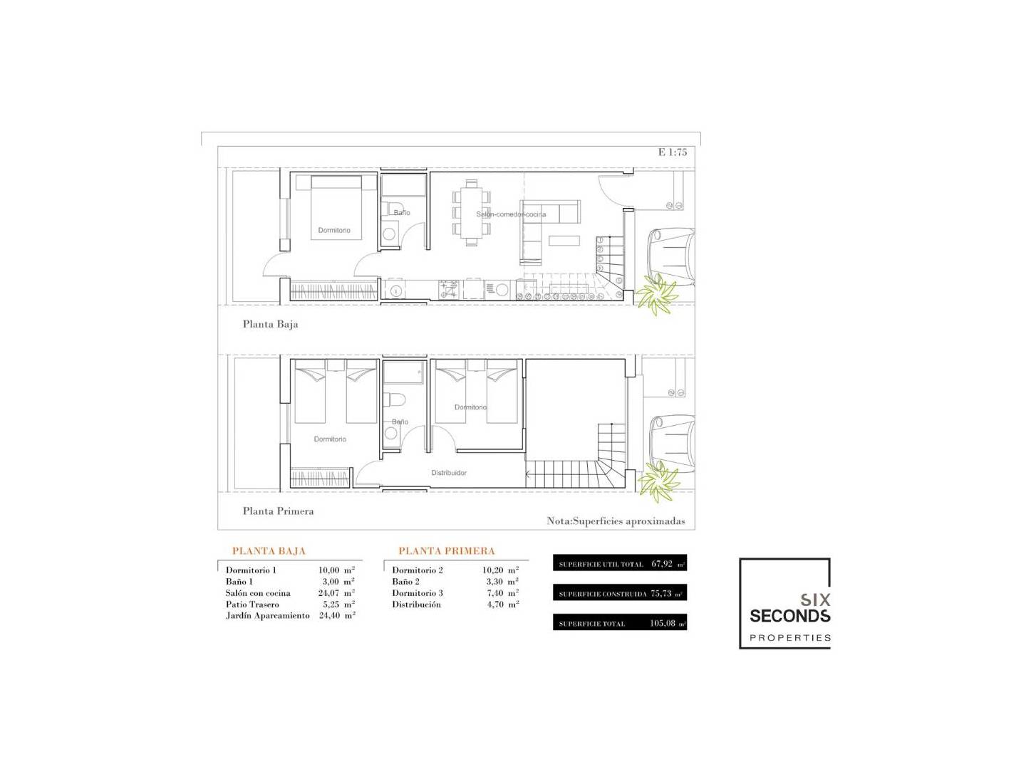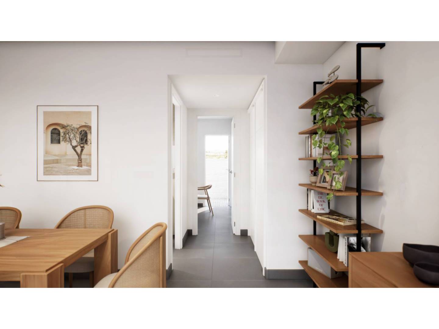 Deze huizen zijn voorzien van keramische vloeren van hoge kwaliteit die duurzaamheid en eenvoudig onderhoud bieden. De hoofddeur is gepantserd en biedt een hoog veiligheidsniveau dankzij de 5 ankerpunten. De witte schuiframen zijn voorzien van thermische onderbrekingen en Climalit-rolgordijnen door het hele huis, behalve in de badkamers. De keuken is voorzien van postgevormde MDF-kasten en een meegeleverd compact kwartswerkblad. Daarnaast beschikt de woning over pre-installatie van een kanaalairconditioningsysteem en een luchtverwarmer, een efficiënt en duurzaam hernieuwbaar energiesysteem. Er is tevens een parkeerplaats van 25 m² beschikbaar.