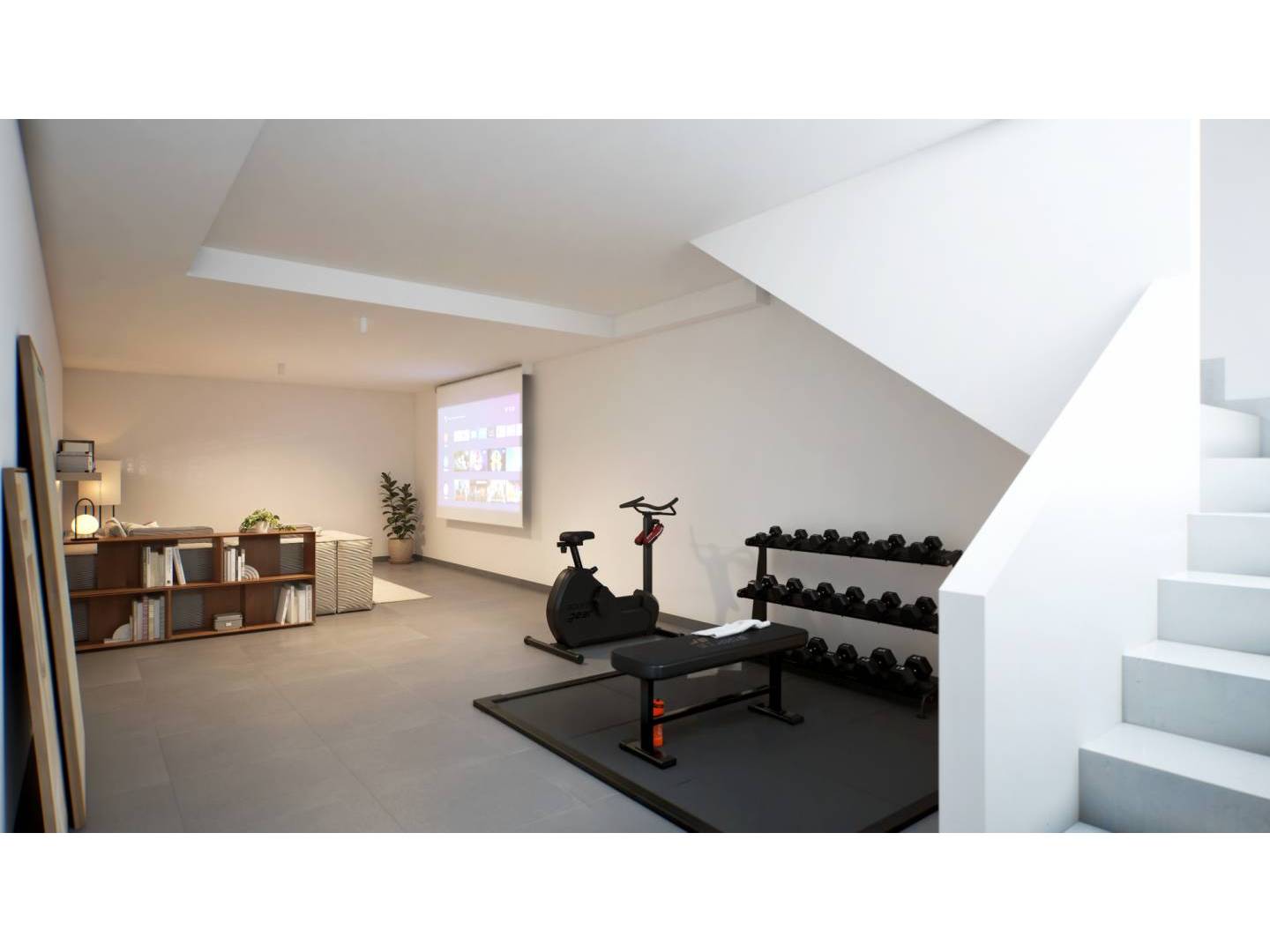 De huizen zijn verdeeld over twee verdiepingen, waardoor een comfortabele scheiding van kamers wordt gegarandeerd. De trap met houten treden met lineaire en eenvoudige afwerking is een elegant centraal element. Elk herenhuis beschikt over 68 m² bruikbare ruimte, die naar behoefte kan worden geconfigureerd. U kunt kiezen voor 1, 2 of zelfs 3 slaapkamers met een aparte of Amerikaanse keuken en 1 of 2 badkamers. Het is ook mogelijk om in plaats van slaapkamers te kiezen voor grote, open en luchtige kamers.
