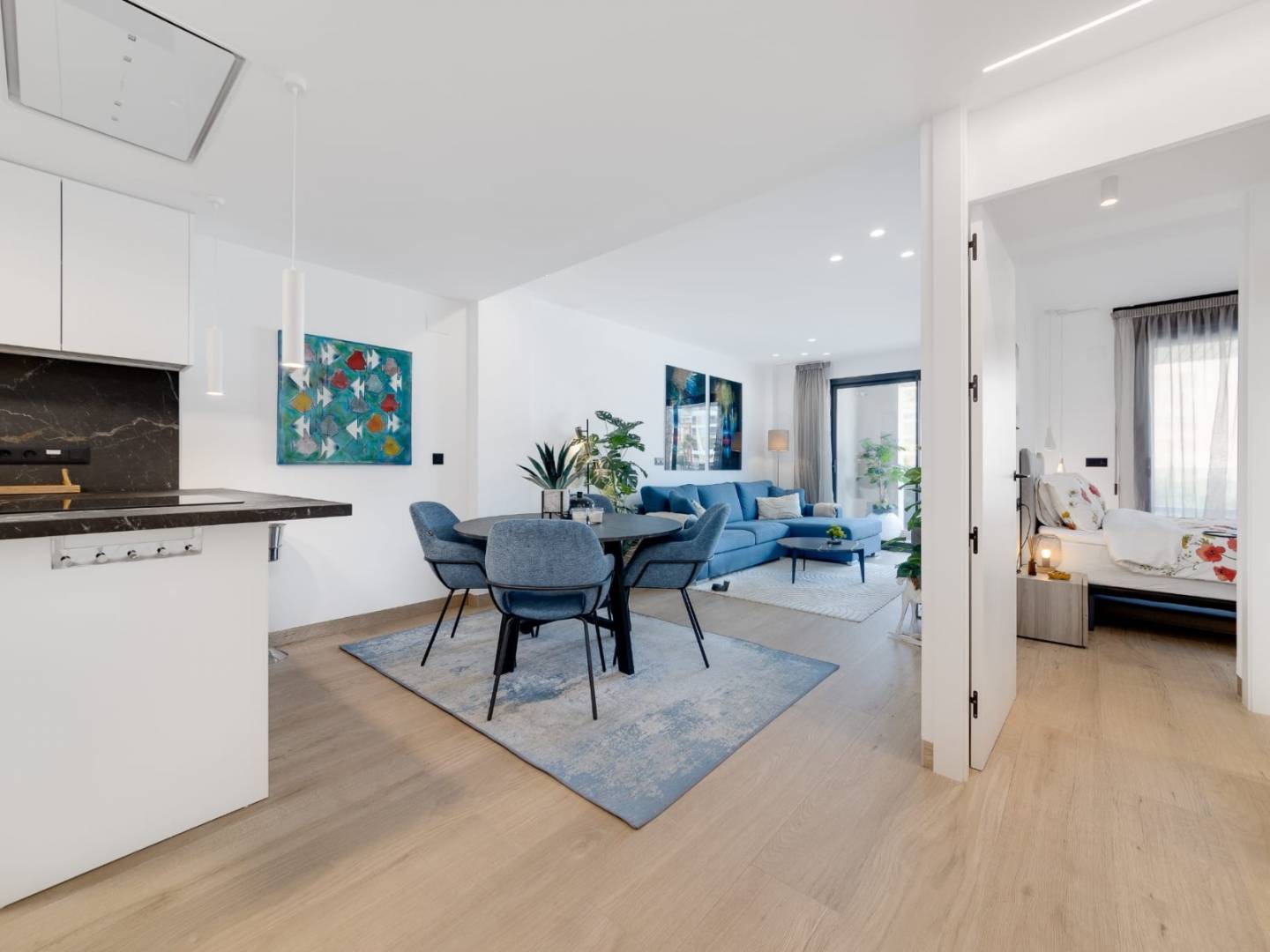 Als u door de deuren loopt, wordt u begroet door een ruime en lichte ruimte die de woonkamer , eetkamer en een moderne keuken combineert en de perfecte omgeving biedt voor entertainment en ontspanning .