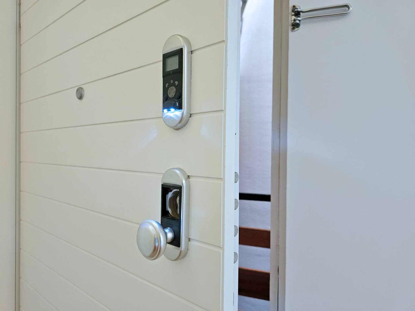 De voorzieningen omvatten onder meer een buitenparkeerplaats met slot en automatische toegang, die comfort en veiligheid garandeert. De gepantserde toegangsdeur DIERRE en het binnenschrijnwerk in wit gelakt hout, handgemaakt door timmerlieden, garanderen een elegante en duurzame afwerking.
