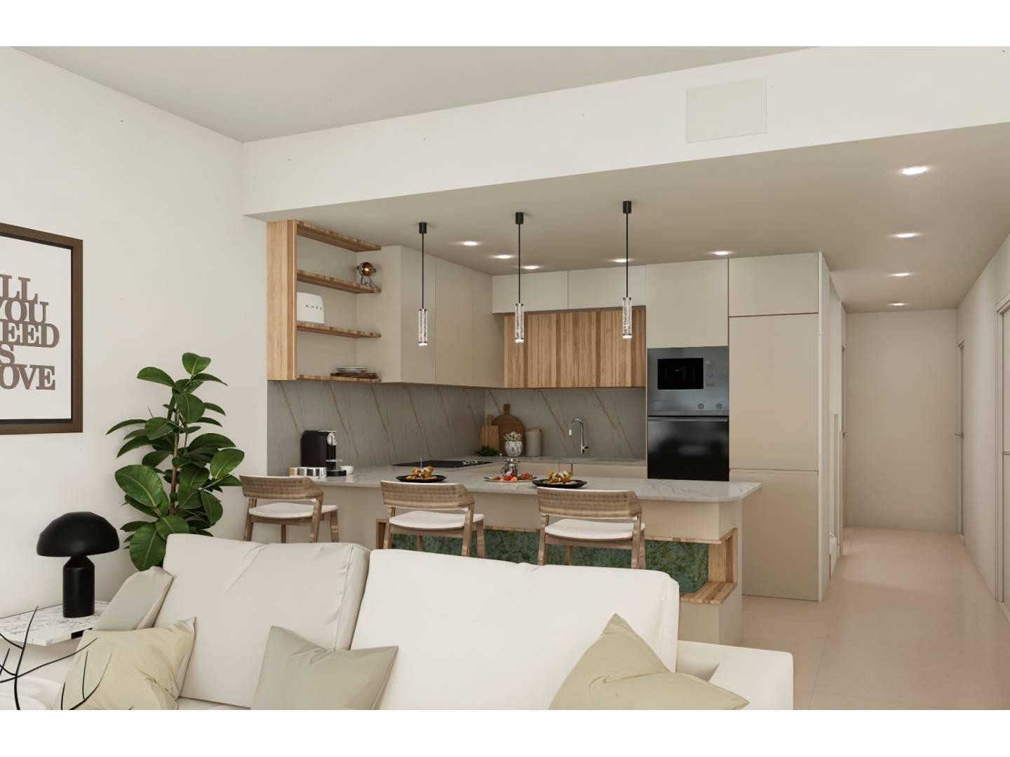 Deze nieuwe villa's zijn beschikbaar in twee uitvoeringen: vrijstaand of halfvrijstaand, elk met 3 slaapkamers, 3 badkamers, een ruime kelder met garage, een privézwembad en een groot solarium om van de zon en het uitzicht te genieten. Hun ontwerp kenmerkt zich door een moderne en elegante stijl, met open, lichte ruimtes, hoogwaardige meubels, airconditioning en vloerverwarming in de badkamers, wat optimaal comfort garandeert. Elke villa beschikt over een aangelegde tuin en een volledig uitgeruste keuken – ideaal voor wie op zoek is naar een woning die functionaliteit en luxe combineert.