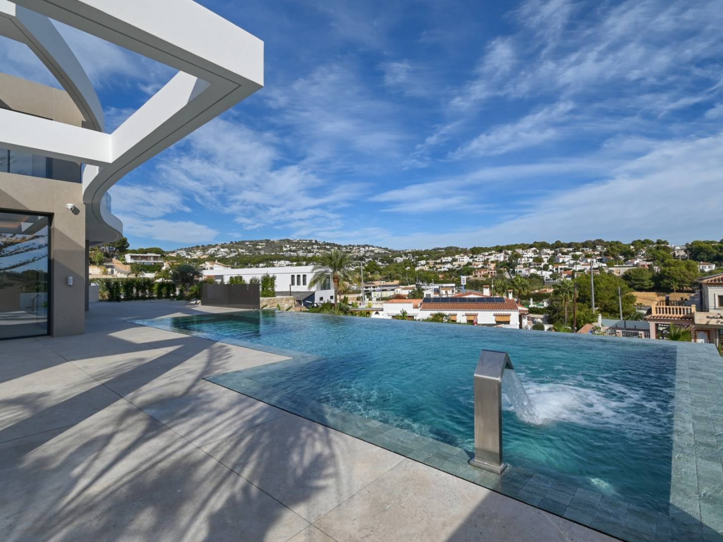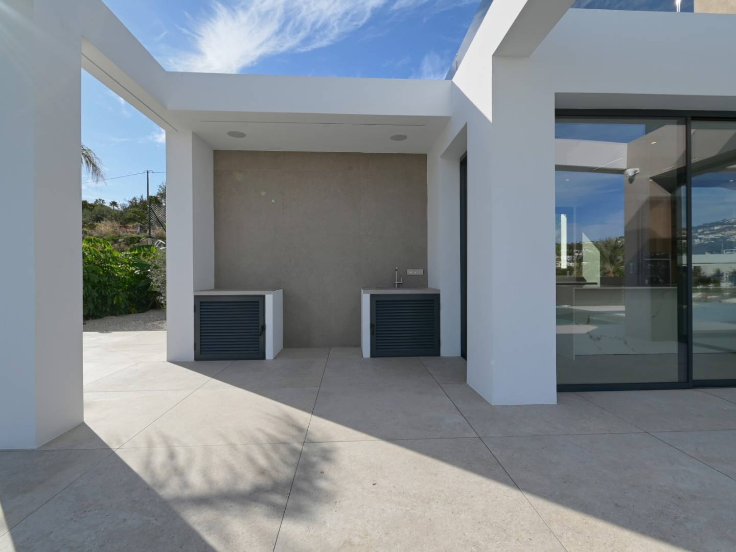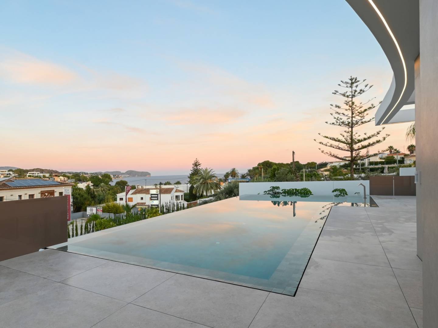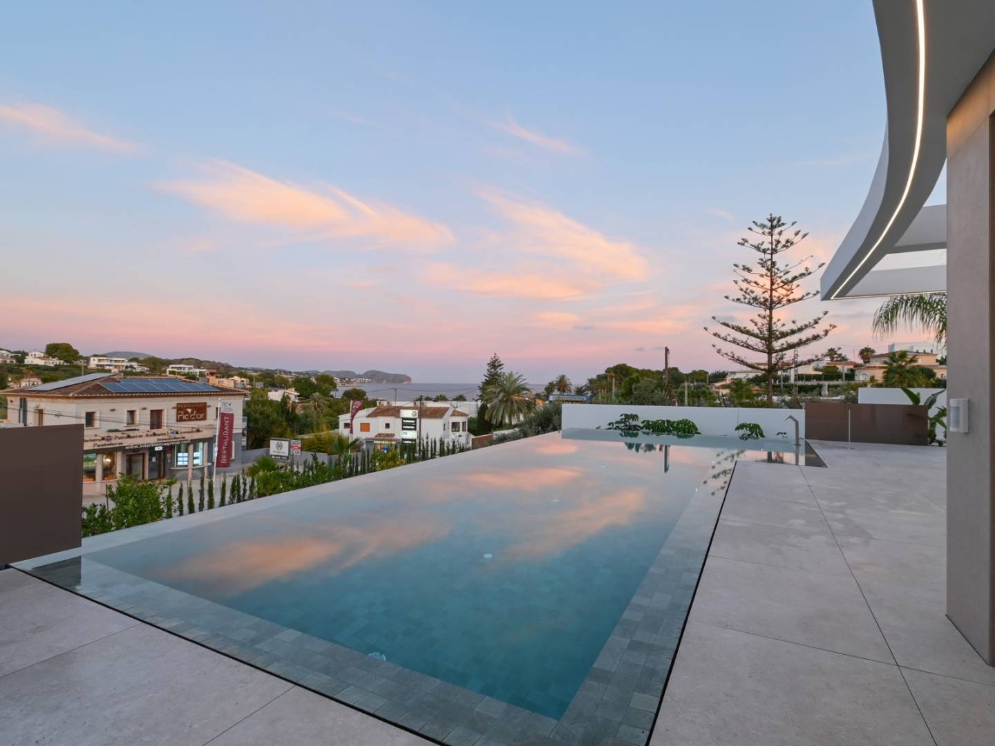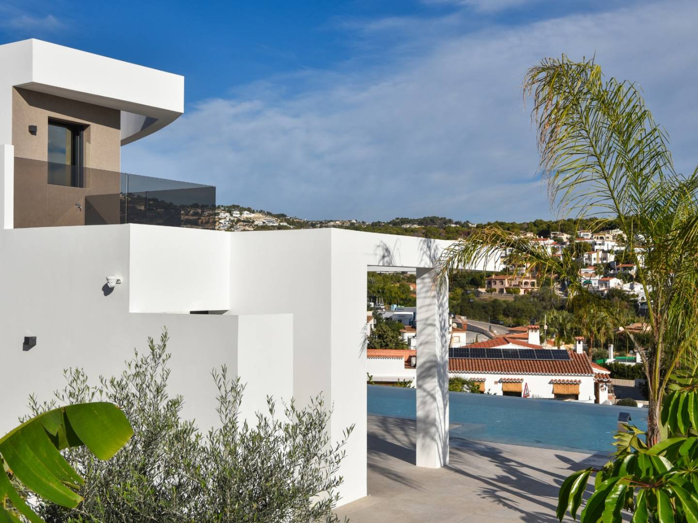 Deze villa op het zuiden maximaliseert het natuurlijke licht gedurende de dag en biedt buitenruimtes zoals een overloopzwembad, een barbecueplek en een tuin die is ontworpen om te profiteren van het mediterrane klimaat.