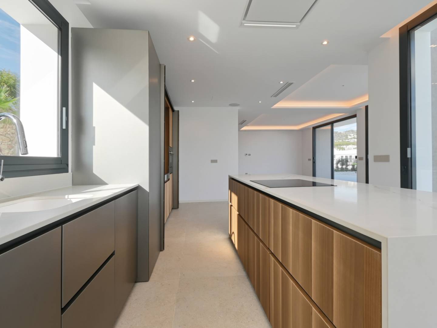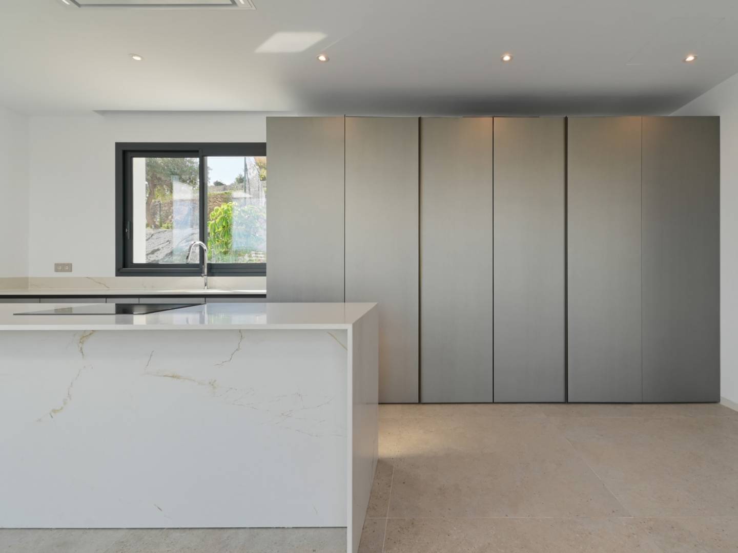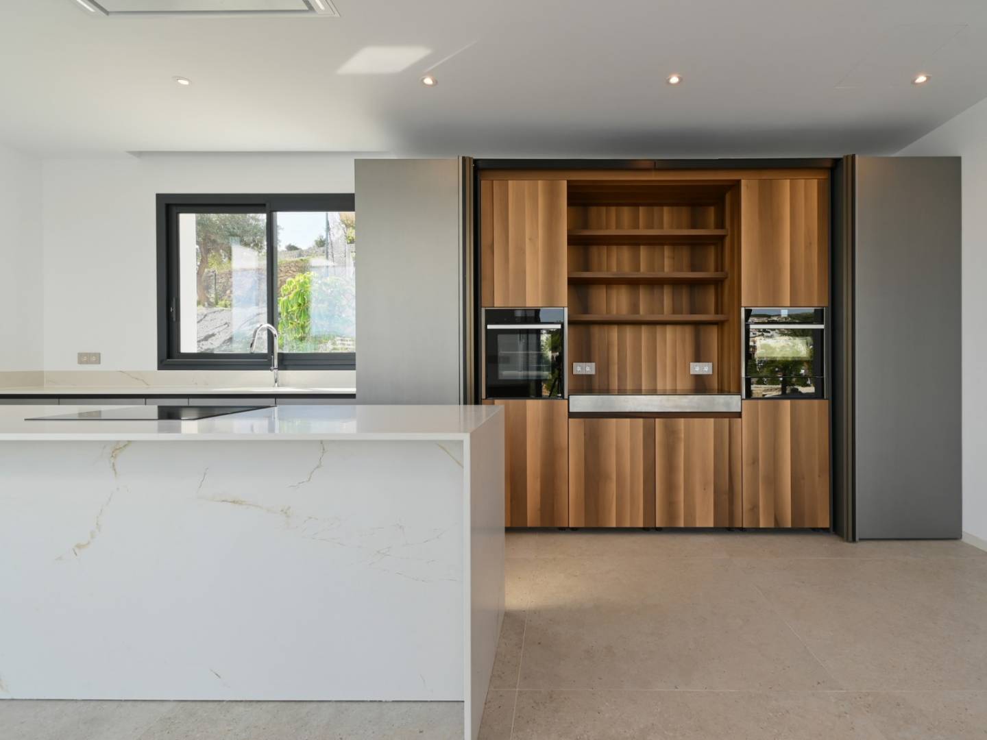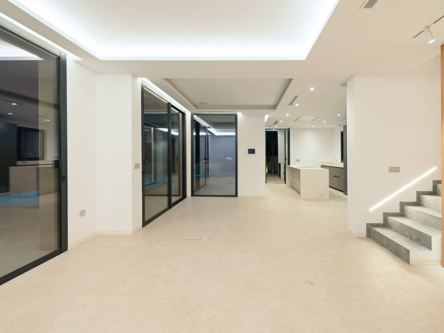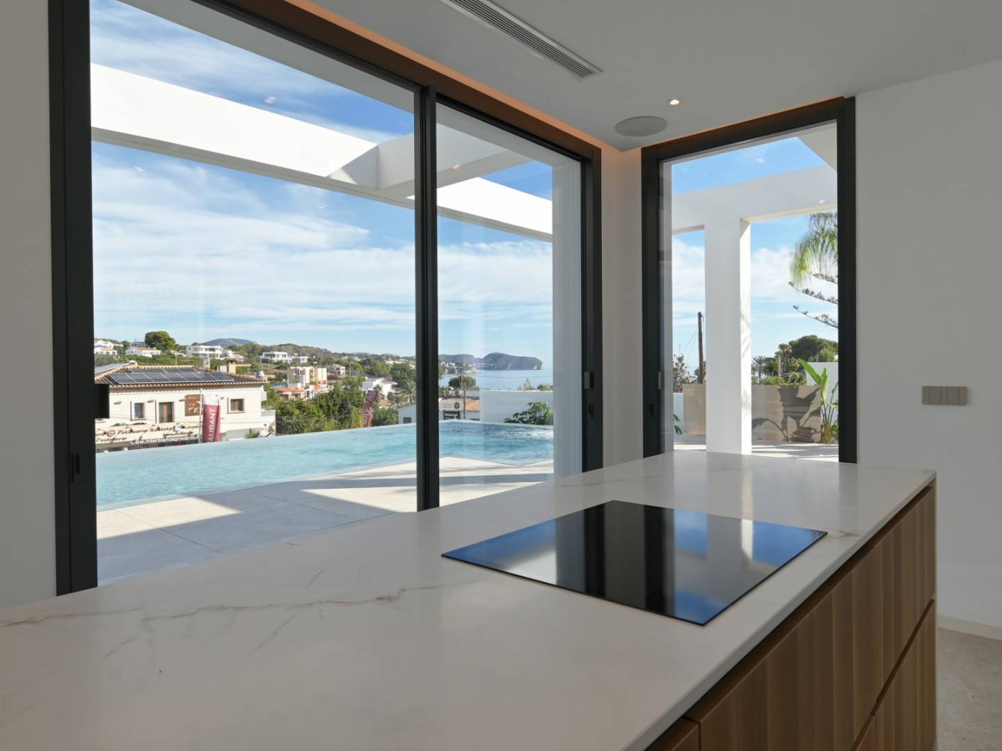 De villa heeft een oppervlakte van 621 m², verdeeld over drie zorgvuldig ontworpen verdiepingen. Op de begane grond, verbonden met het terras en het overloopzwembad, bevinden zich twee slaapkamers, waarvan één met een eigen badkamer, een gastentoilet, een volledig uitgeruste keuken en een ruime woon-eetkamer met directe toegang tot de barbecueplek. Boven zijn er twee tweepersoonsslaapkamers met eigen badkamers, beide met toegang tot open terrassen waar u kunt genieten van het uitzicht op zee. In de kelder bevinden zich exclusieve ruimtes waaronder een fitnessruimte, een thuisbioscoop, een speelkamer, een sauna, een binnenzwembad, een wasruimte en een extra toilet.