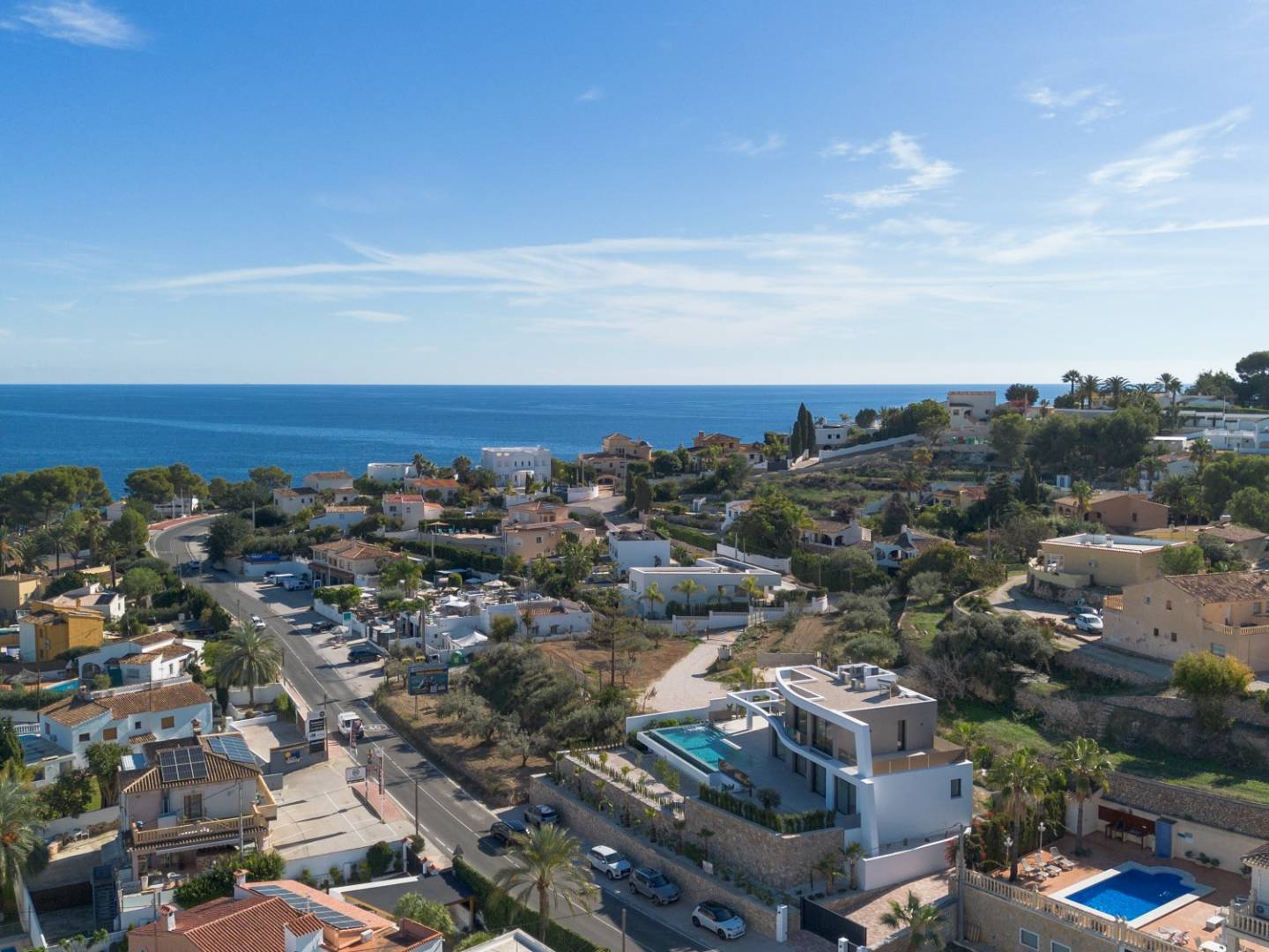Gelegen op een perceel van 1.250 m², combineert deze luxe villa modern design, comfort en een uitzonderlijke locatie in de rustige urbanisatie La Fustera. Op slechts 240 meter van het strand en 2 kilometer van het centrum van Calpe, biedt het pand een spectaculair uitzicht over de zee en richting Moraira, evenals een ideale nabijheid van voorzieningen en natuurlijke landschappen.