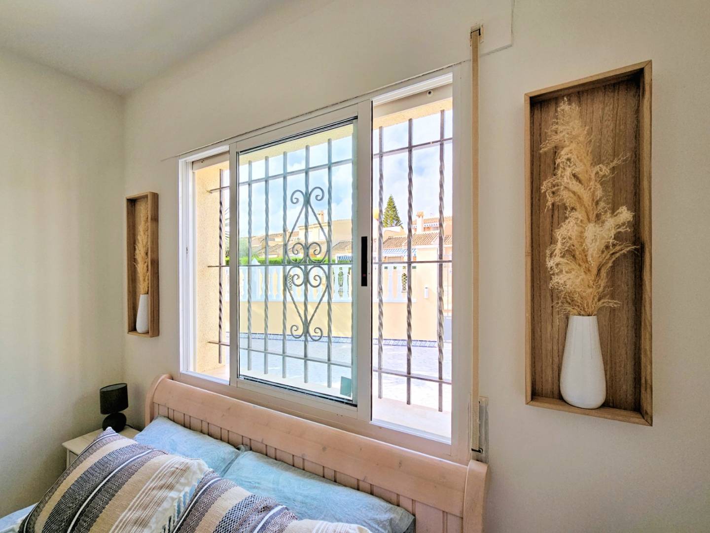 Deze buitengewone villa bevindt zich in de gezellige wijk “Estrella de Mar", een rustige omgeving tussen het groen vlak aan het strand van de Mar Menor! Estrella de Mar is een Spaans dorpje met een gezellige sfeer en voorzien van de lokale bars, restaurants, winkel en al uw dagelijkse benodigdheden. Met zijn uitzonderlijke locatie heb je hier een heerlijk vakantiegevoel maar toch ben je snel in verschillende bezienswaardigheden, grote steden, veel cultuur, golfbanen, shoppingcentra en nog zoveel meer. Mar Menor is een echte trekpleister met zijn mooie promenades, stranden, havens, watersporten enz.. Het is een stukje Middellandse Zee afgesloten van de rest, wat ervoor zorgt dat het zeewater altijd een beetje warmer en rustiger is. De woning zelf heeft directe toegang tot een groene promenade en het strand! Deze fantastische eigenschap is niet de enige reden waarom deze woning een echte buitenkans is. De woning is namelijk volledig vrijstaand en voorzien van een prachtige tuin met privé zwembad, terrassen en veel gezellige plaatsjes om heerlijk te genieten van het klimaat. Op de gelijkvloerse verdieping van deze gerenoveerde woning heeft u een grote woon/leefruimte met open keuken, 2 tweepersoons slaapkamers, een familie badkamer en de hoofdslaapkamer met ensuite badkamer. Via een buitentrap komt u op het solarium met adembenemende vergezichten en vind u ook de 4de slaapkamer met en-suite badkamer en eigen kitchenette. Als nieuwe eigenaar van deze woning heeft u ook toegang tot de urbanisatie die voorzien is van een bar/restaurant, tennisveld, zwembad, basketveld, speeltuin en mini-golf. Bovenop alle vooraf genoemde voordelen, geniet deze woning ook nog van tal van extra’s zoals; nieuwe airco’s (warm/koud), volledig gerenoveerd, parking plaats, inbouwkasten, veel opbergruimte (binnen en buiten), aparte kast voor wasmachine en droger, recent opnieuw geverfd (binnen en buiten), rolluiken en alarm. Het zwembad is volledig opnieuw bezet en voorzien van een nieuw pomp- en filtersysteem. Er is mogelijkheid tot vakantieverhuur en is momenteel verhuurd tot eind september (dit is bespreekbaar, indien u als nieuwe eigenaar dit niet wenst te doen). Laat deze buitenkans niet aan u voorbij gaan en contacteer ons snel voor een bezoek aan deze prachtige strandwoning onder de Spaanse zon! Suma: 500 euro/jaar Community fees: 1000 euro/jaar
