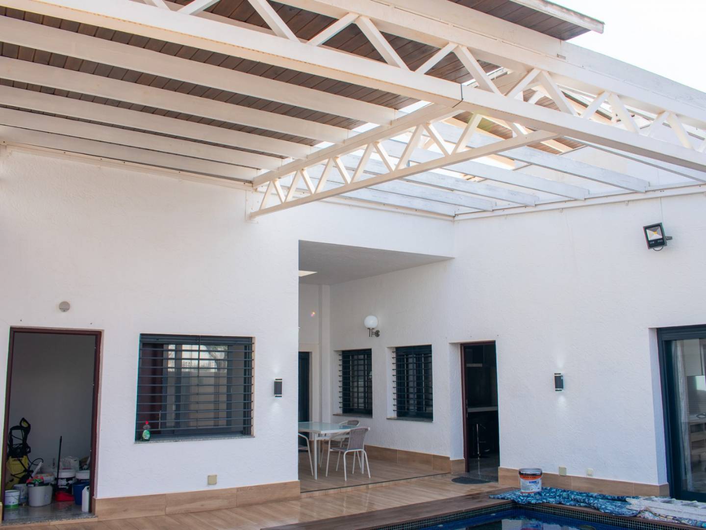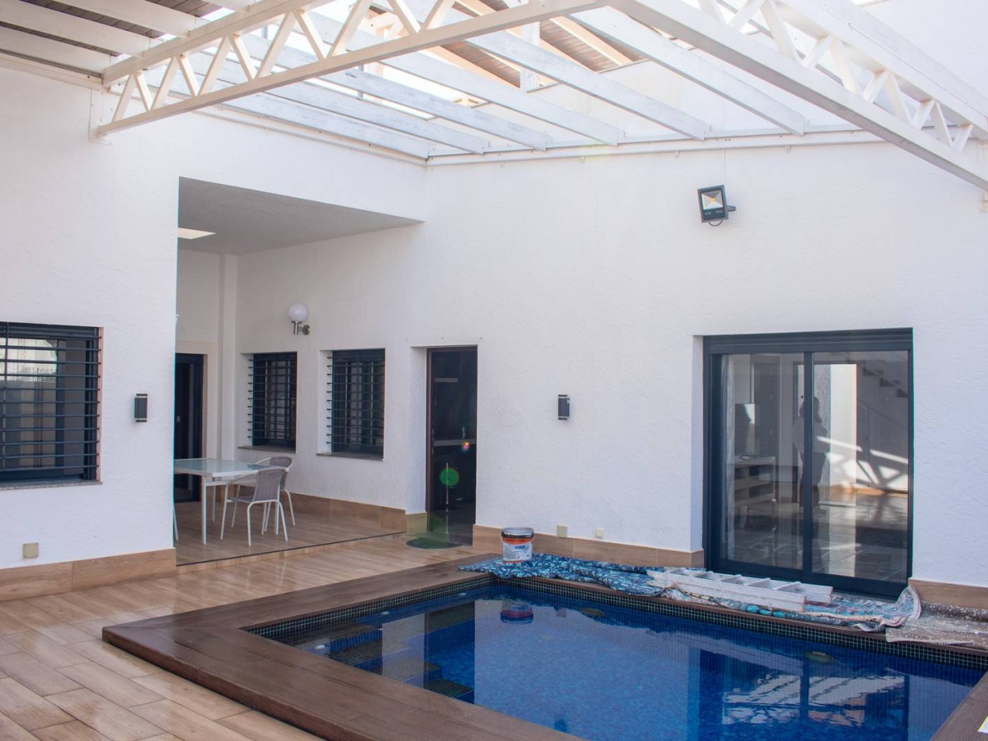 De woning beschikt over vier slaapkamers met inbouwkasten, waaronder een master suite, evenals een volledig uitgeruste keuken en een woon-/eetkamer met dubbele open haard, die ook verbonden is met de keuken. Voorzieningen zijn onder meer marmeren vloeren, elektrische rolluiken en gepantserde deuren voor comfort en bescherming. Er is ook een intercom en een apart kantoor, ideaal voor telewerken. Het privé-zoutwaterzwembad zorgt voor een vleugje exclusiviteit en welzijn.