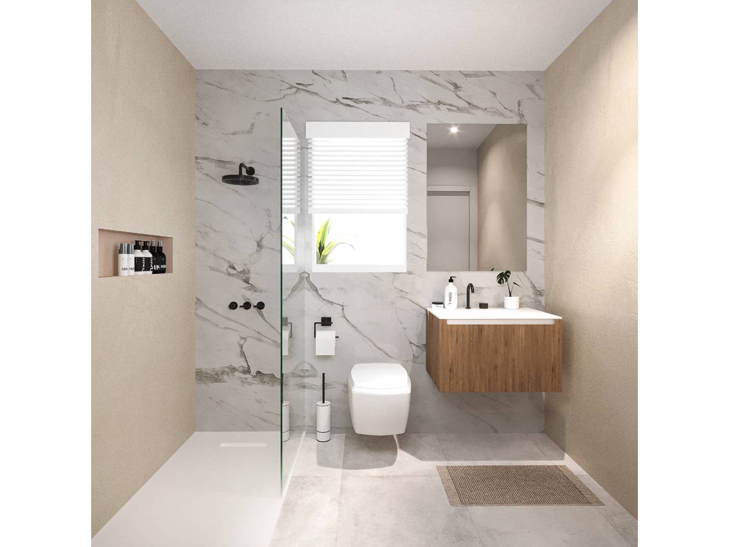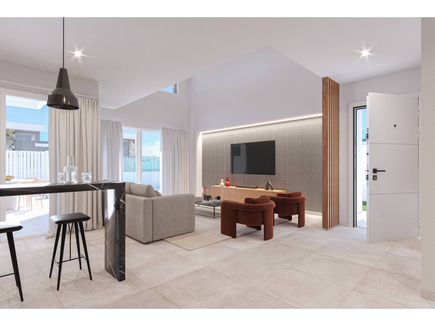 Het interieur wordt gecompleteerd door vooraf geïnstalleerde airconditioning en een open woonkamer met plafonds van dubbele hoogte, waardoor een gevoel van ruimte en licht ontstaat. Elke villa beschikt bovendien over een privézwembad, waar u heerlijk kunt ontspannen en genieten van het mediterrane klimaat in een exclusieve en comfortabele omgeving.